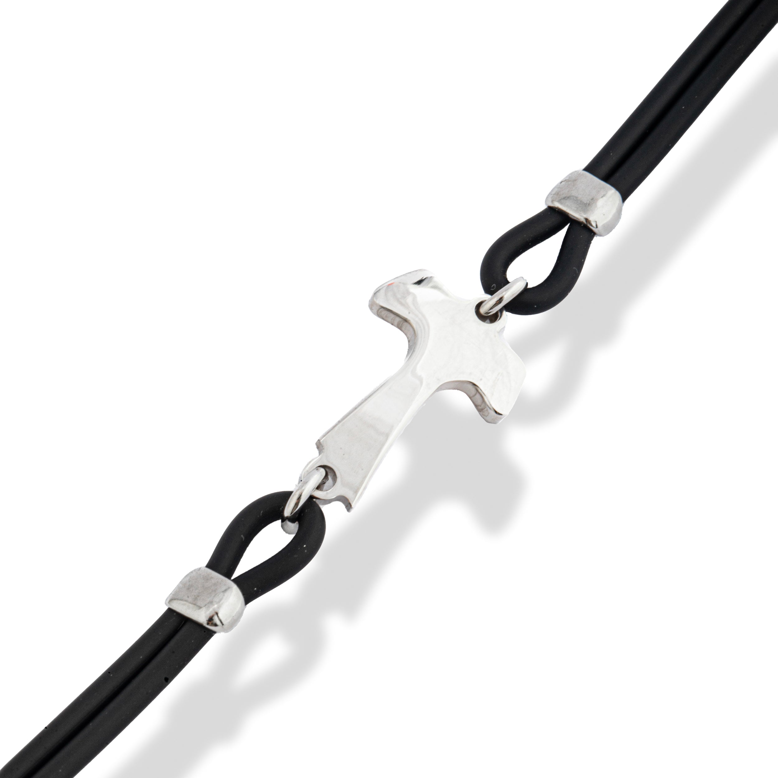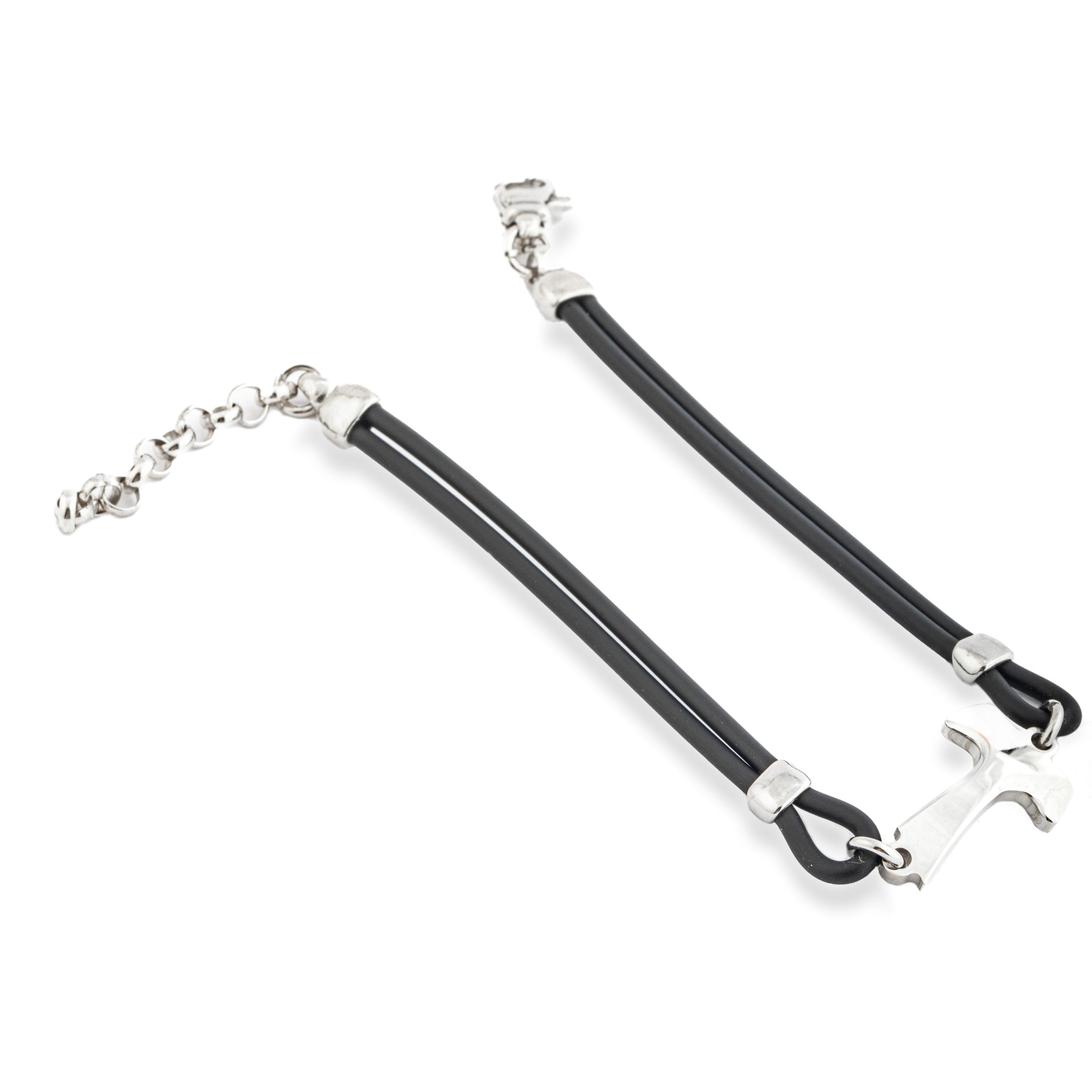 Exclusive rubber and 925 silver bracelet with Tao. Made with high quality materials. Tao: 1.3cm x 1.8cm. Thickness 2mm. Length: 17cm. Extension: 3.5cm.
