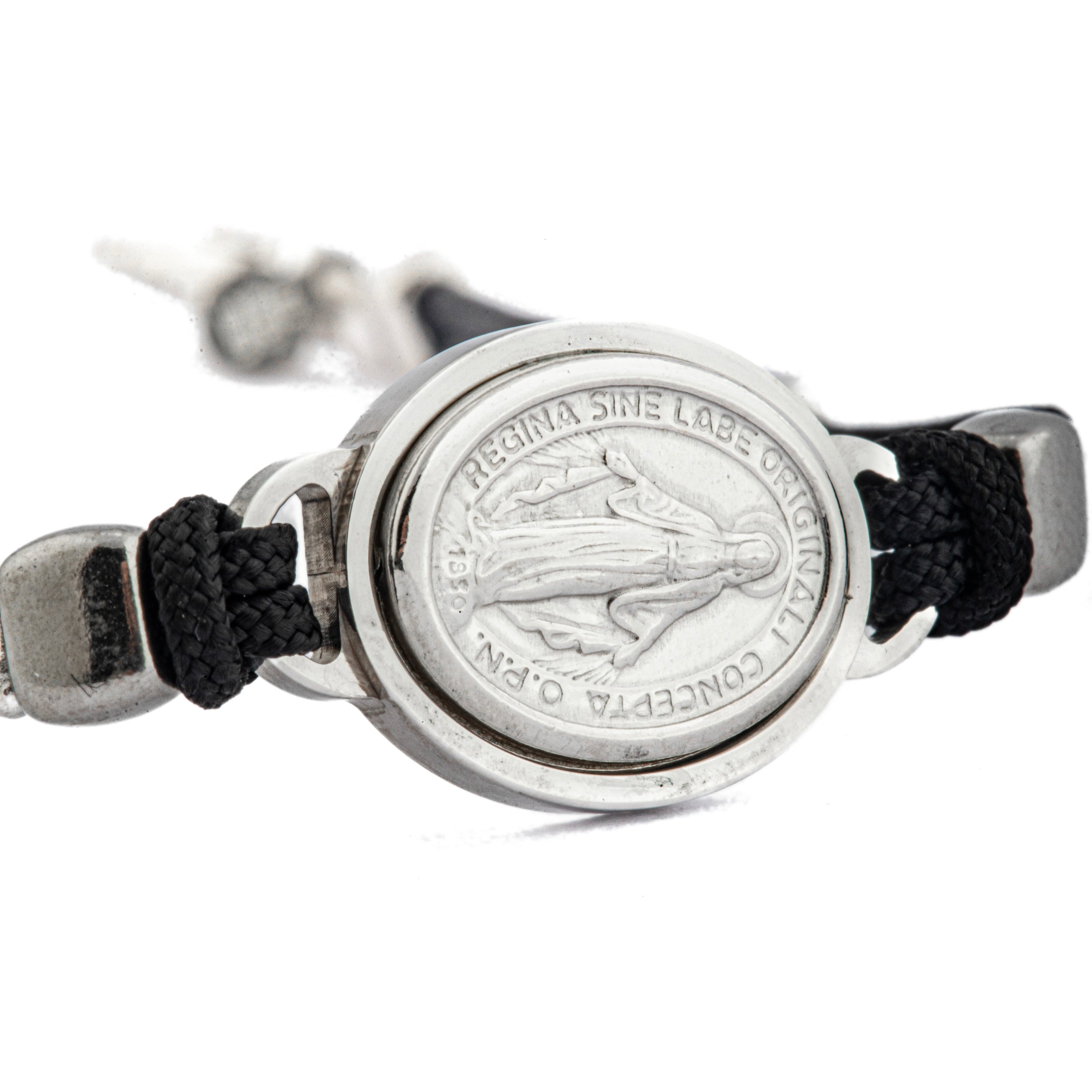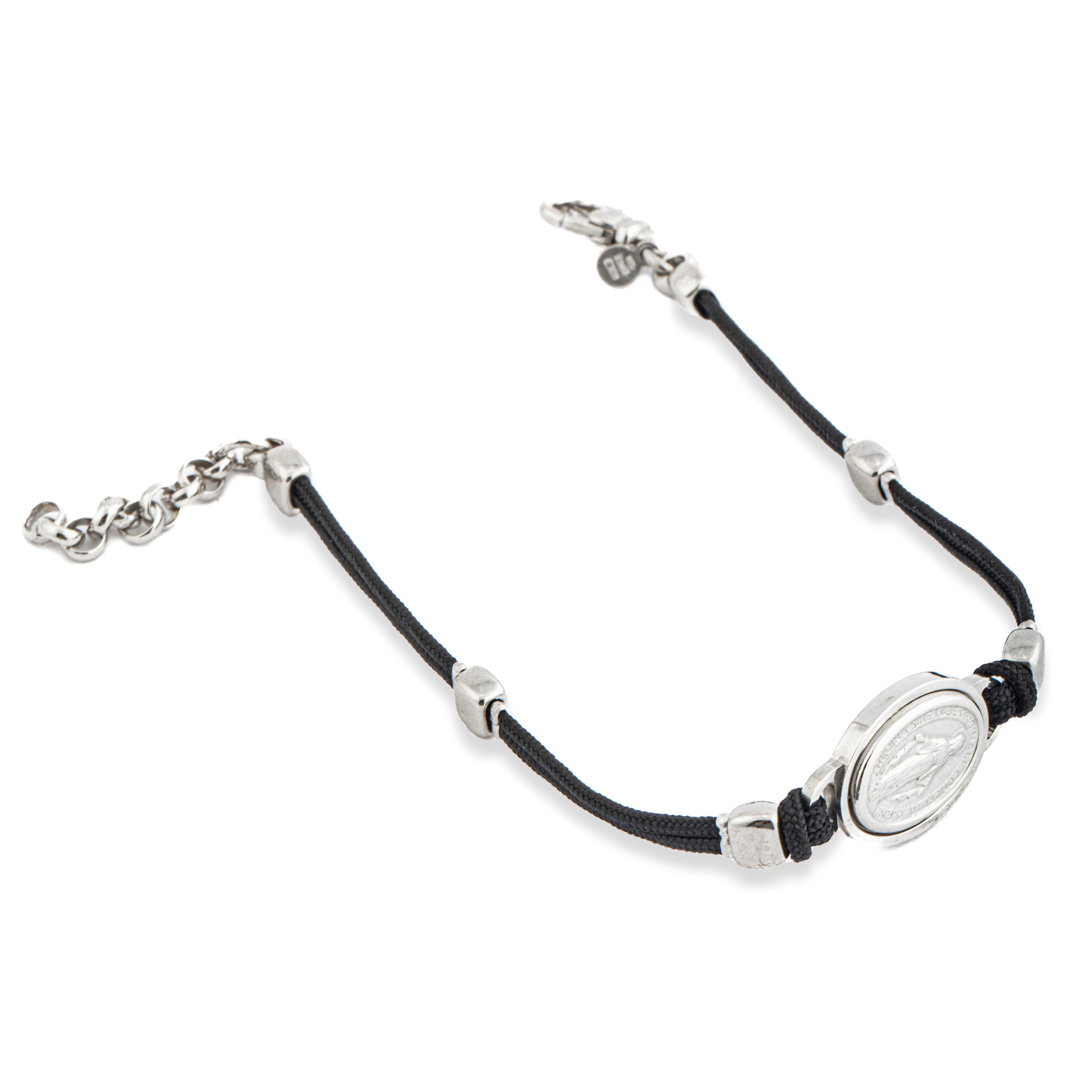 Exclusive 925 silver bracelet with Silver Madonna and cord. Made with high quality materials. Length of 17 cm. Extension: 3.5cm. Madonna: 1.3cm x 1.7cm