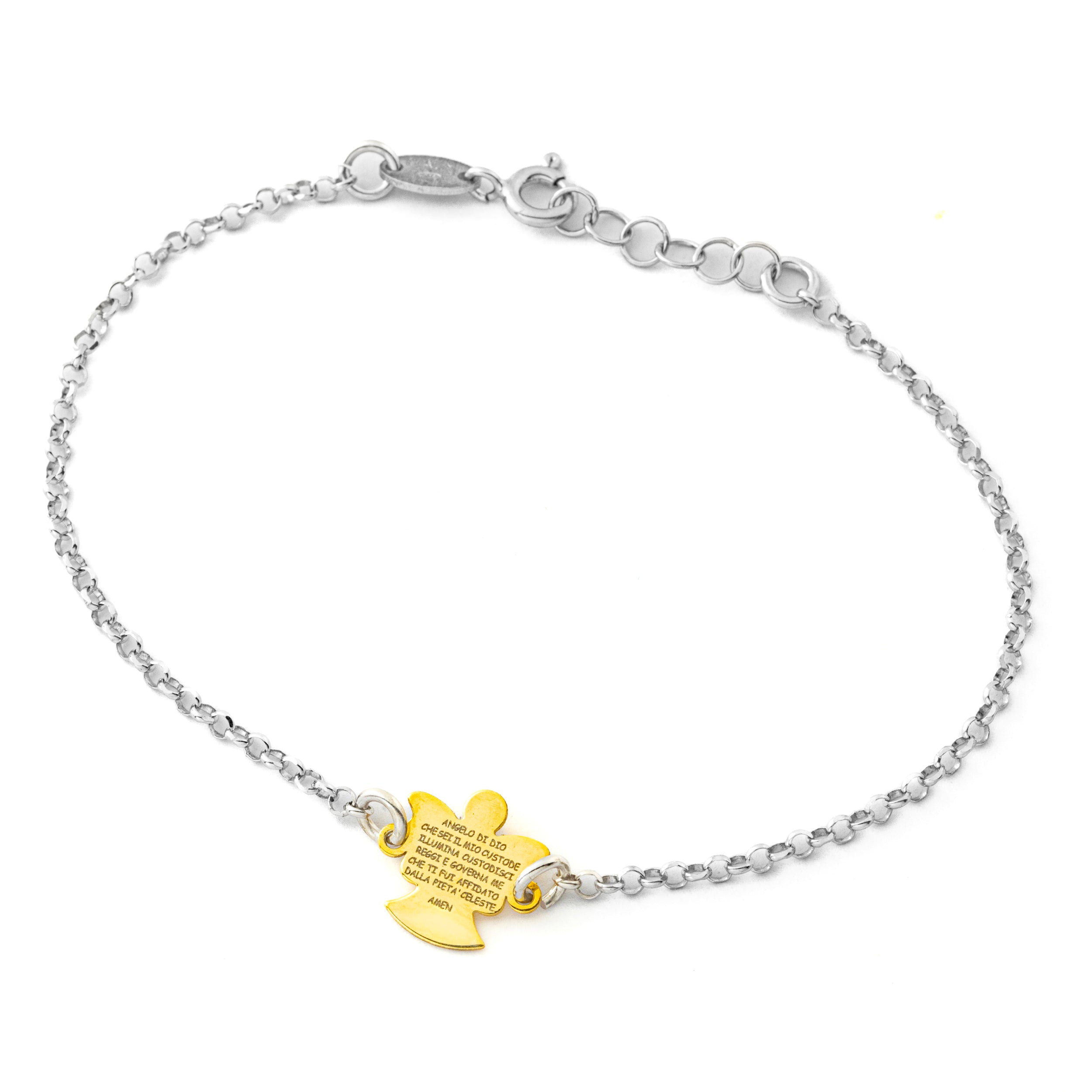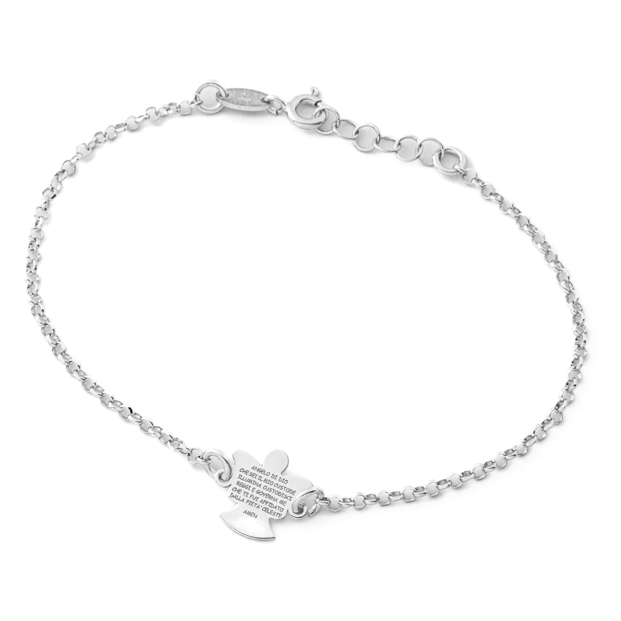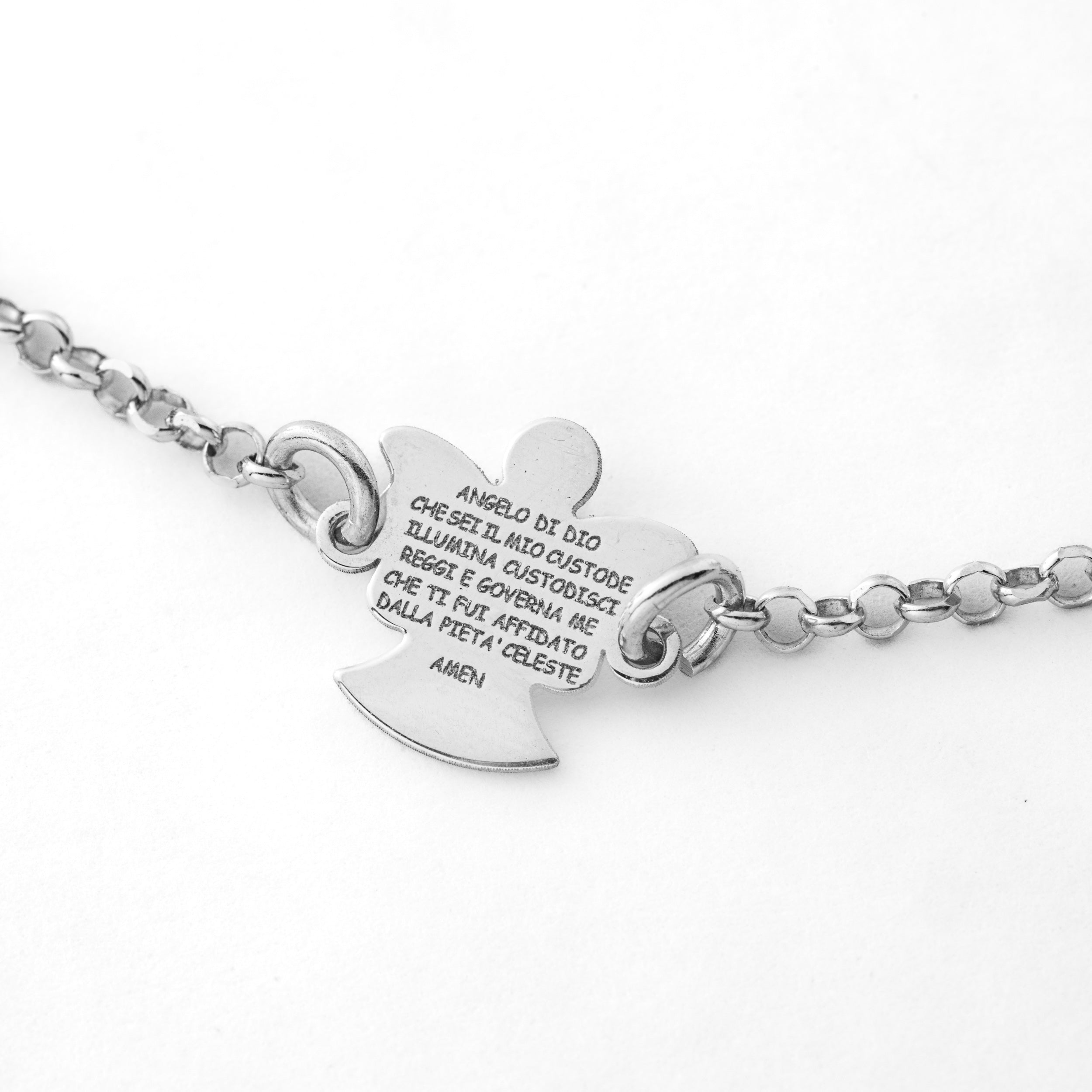 Exclusive 925 silver bracelet with rolò link and angel with laser engraving with prayer. Made with high quality materials. Length: 17cm. Extension 2.5cm