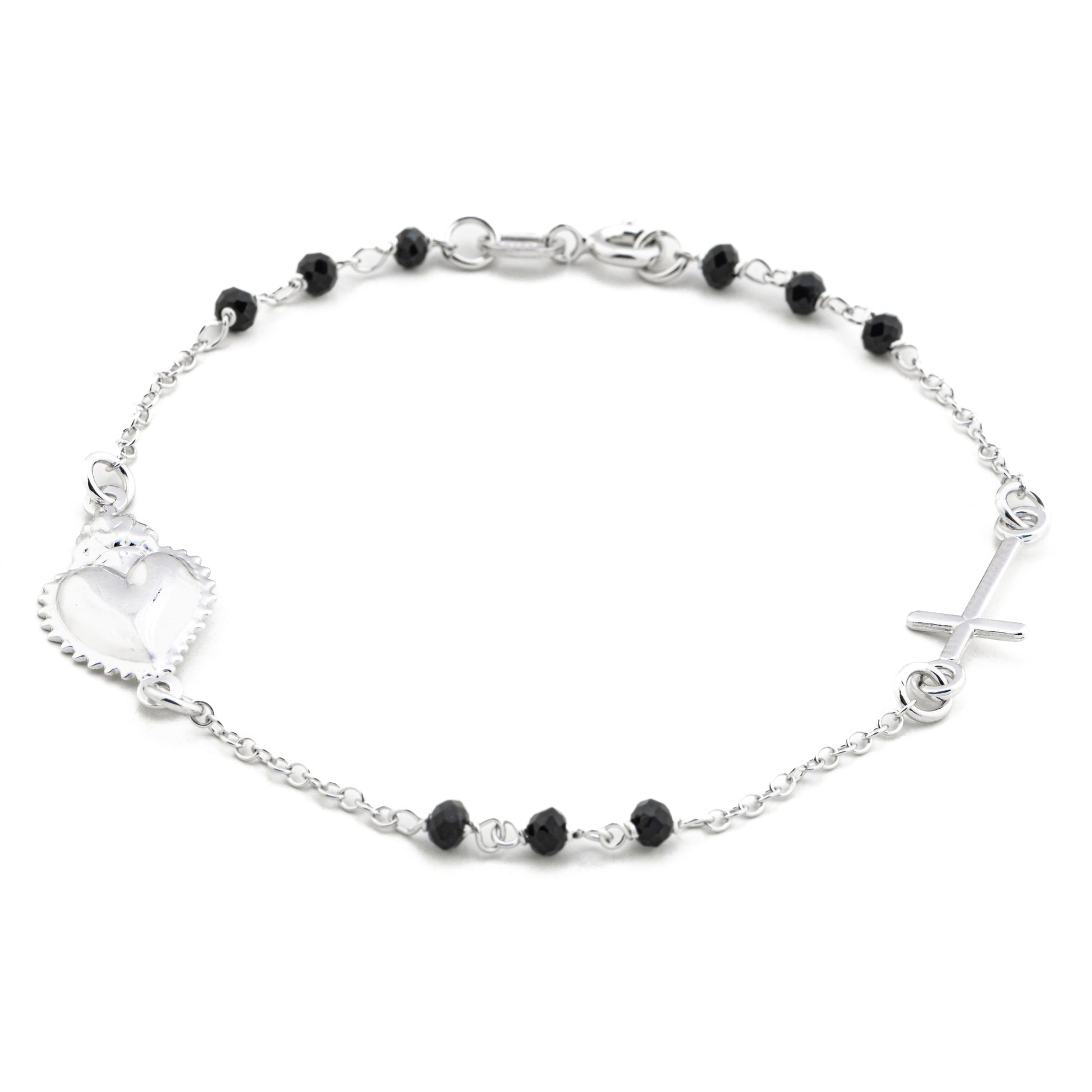 Exclusive 925 silver bracelet. With 3 +3 +3 beads of 2mm, this bracelet is embellished with a Sacred Heart and Cross. Made with high quality materials.