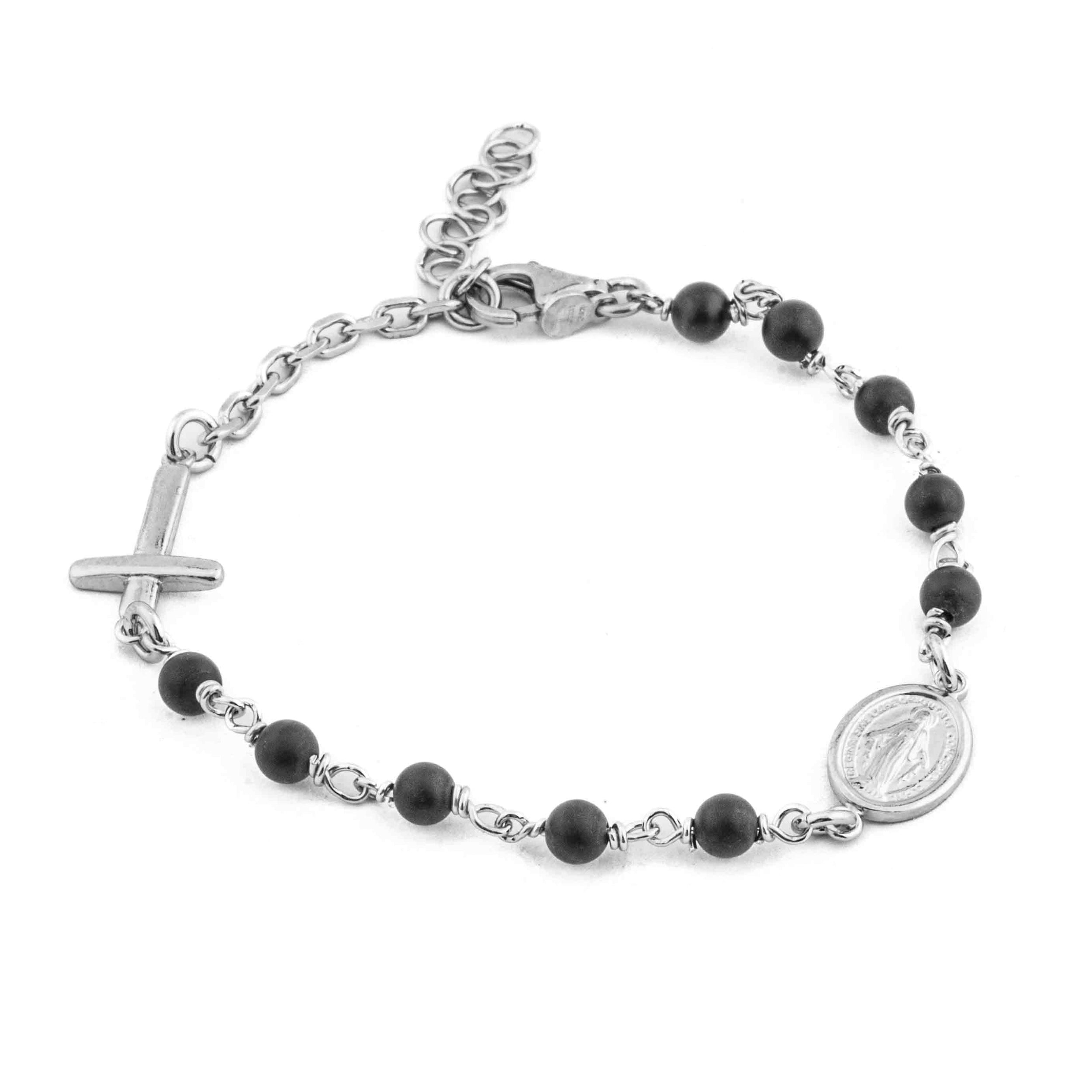 Exclusive 925 silver bracelet. With 5 + 5 4.5mm beads, this bracelet is embellished with a Miraculous Madonna medal. Made with high quality materials. Length 17cm and extension 2.5cm
