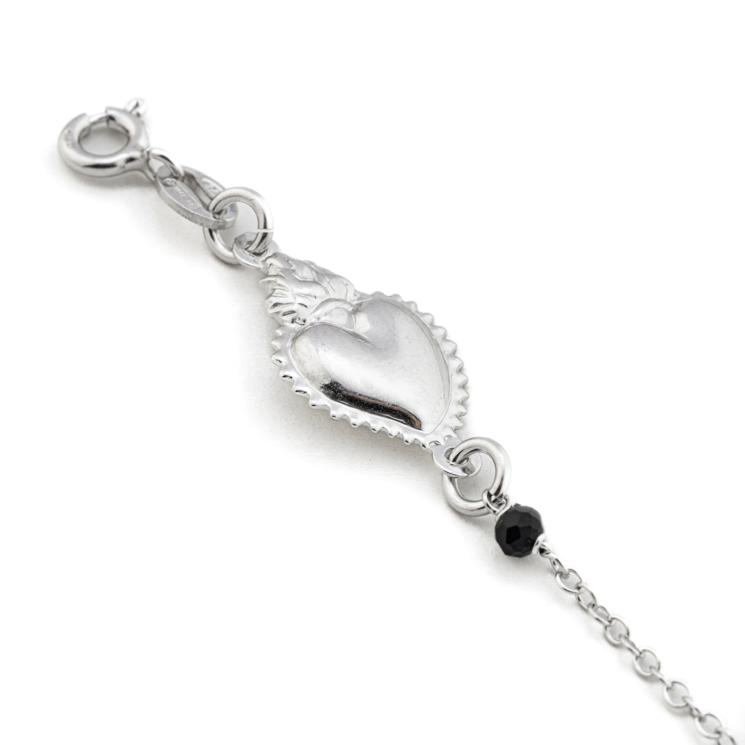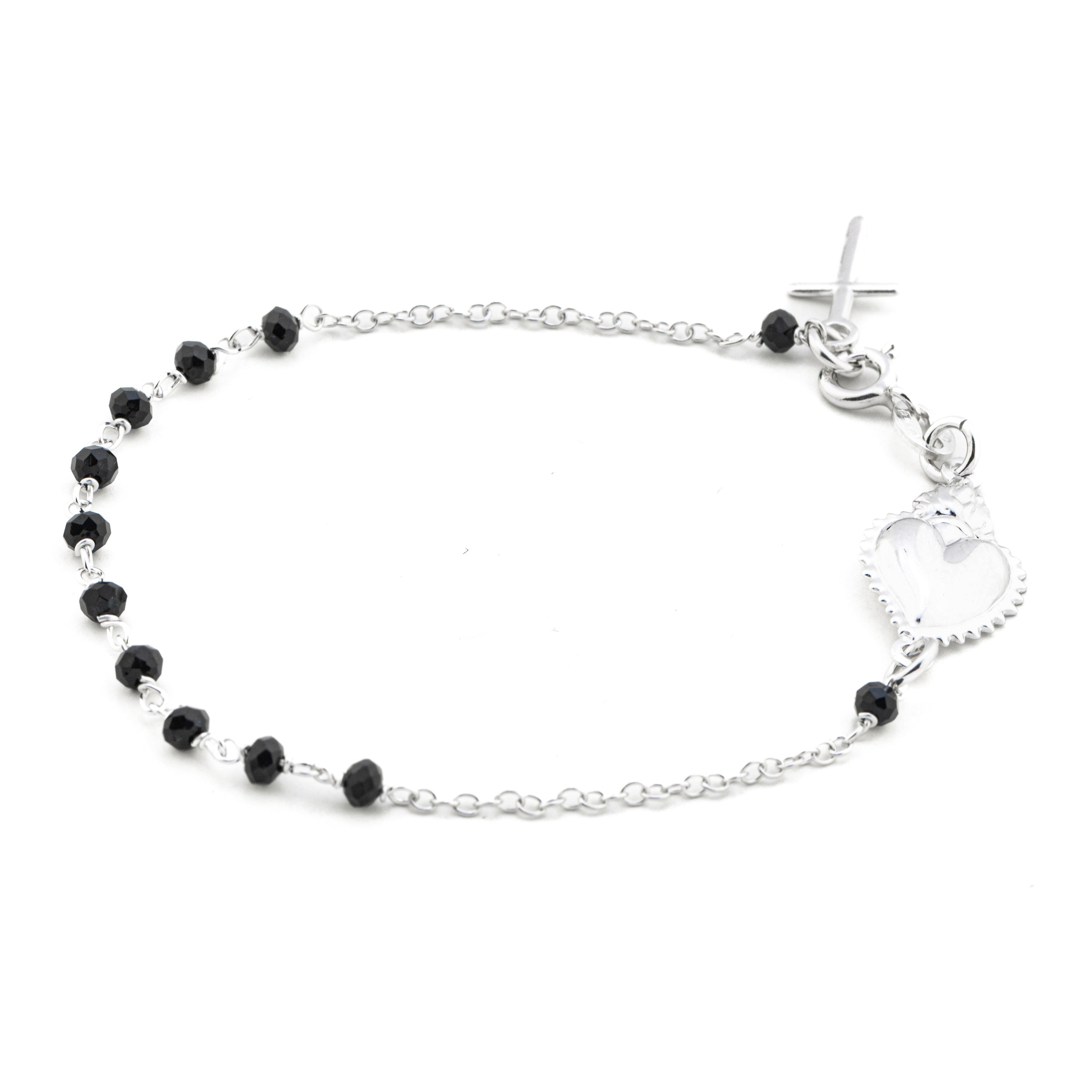 Exclusive 925 silver bracelet. With 2mm dozen beads, this bracelet is embellished with a Sacred Heart and pendant Cross. Made with high quality materials. Length 17cm.
