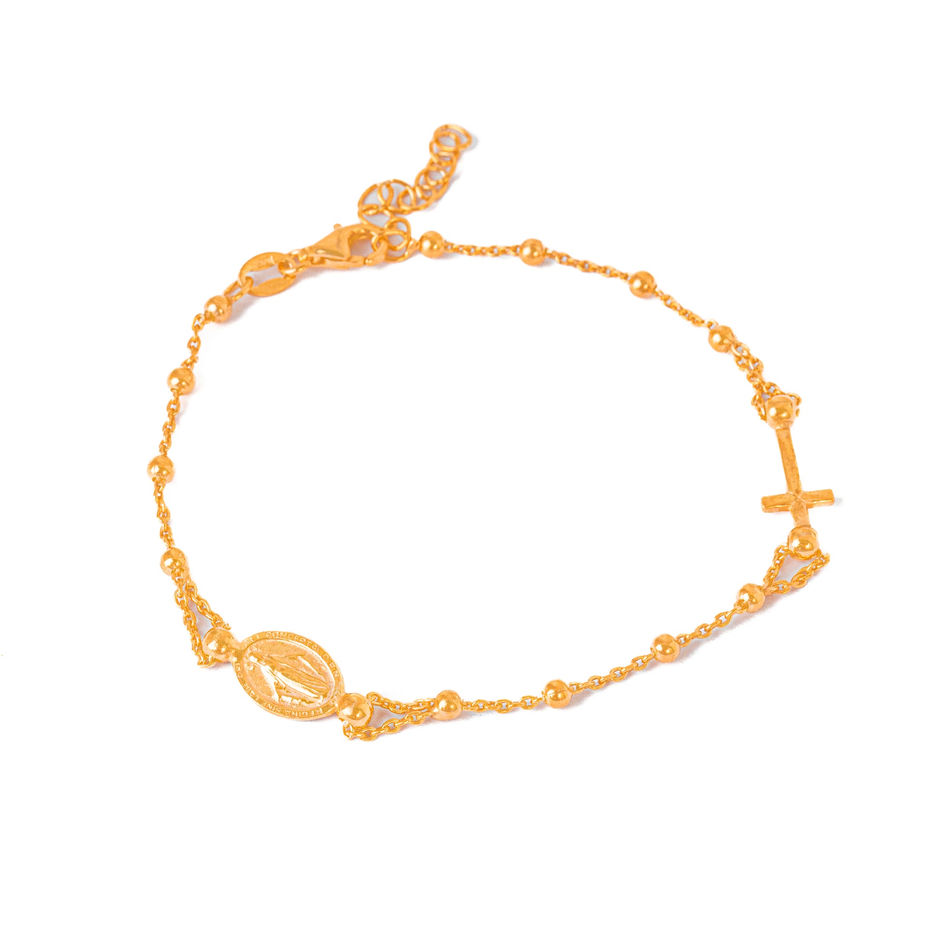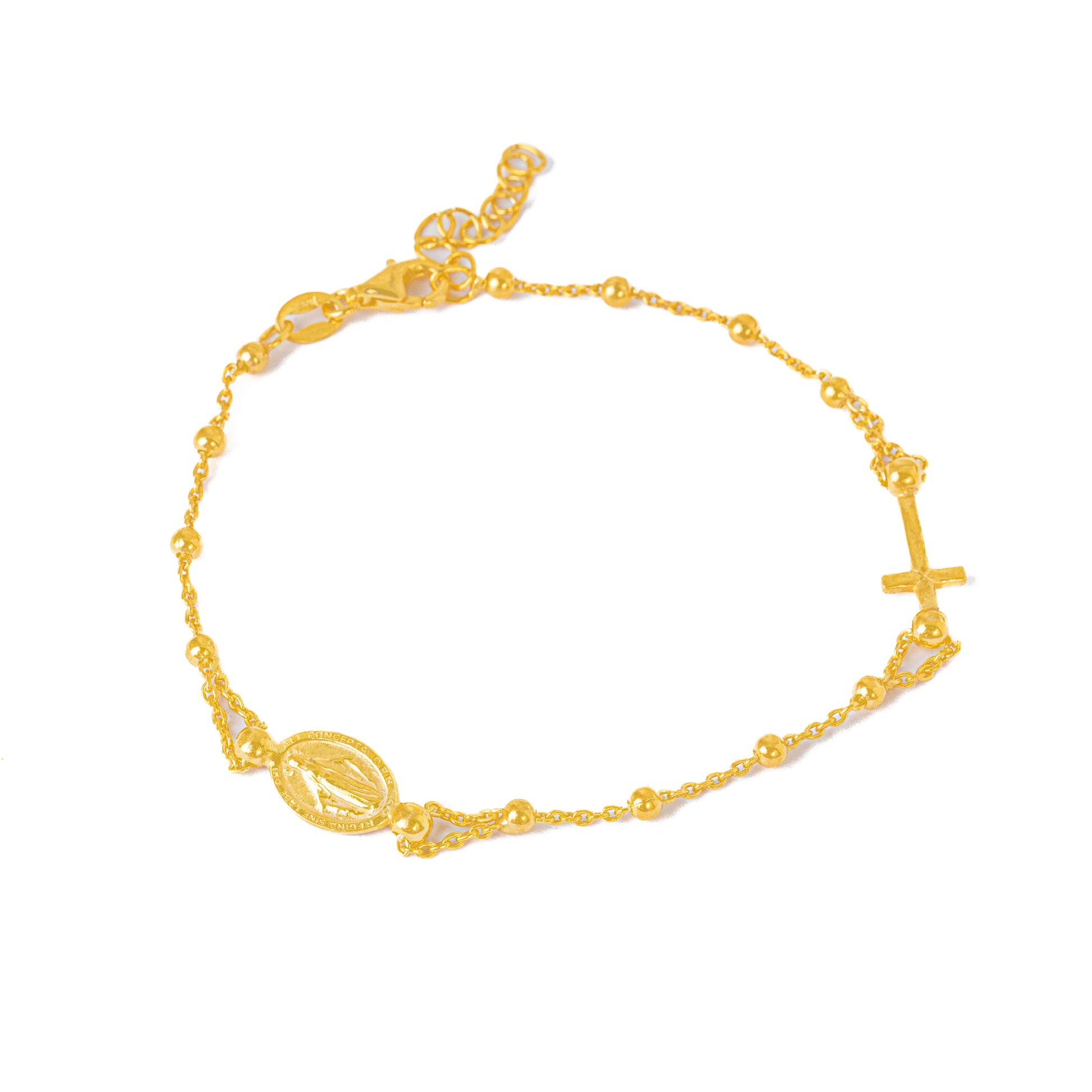 Bracciale "3 + 3" di Grano Liscio con Croce e Madonna Miracolosa. Argento 925.