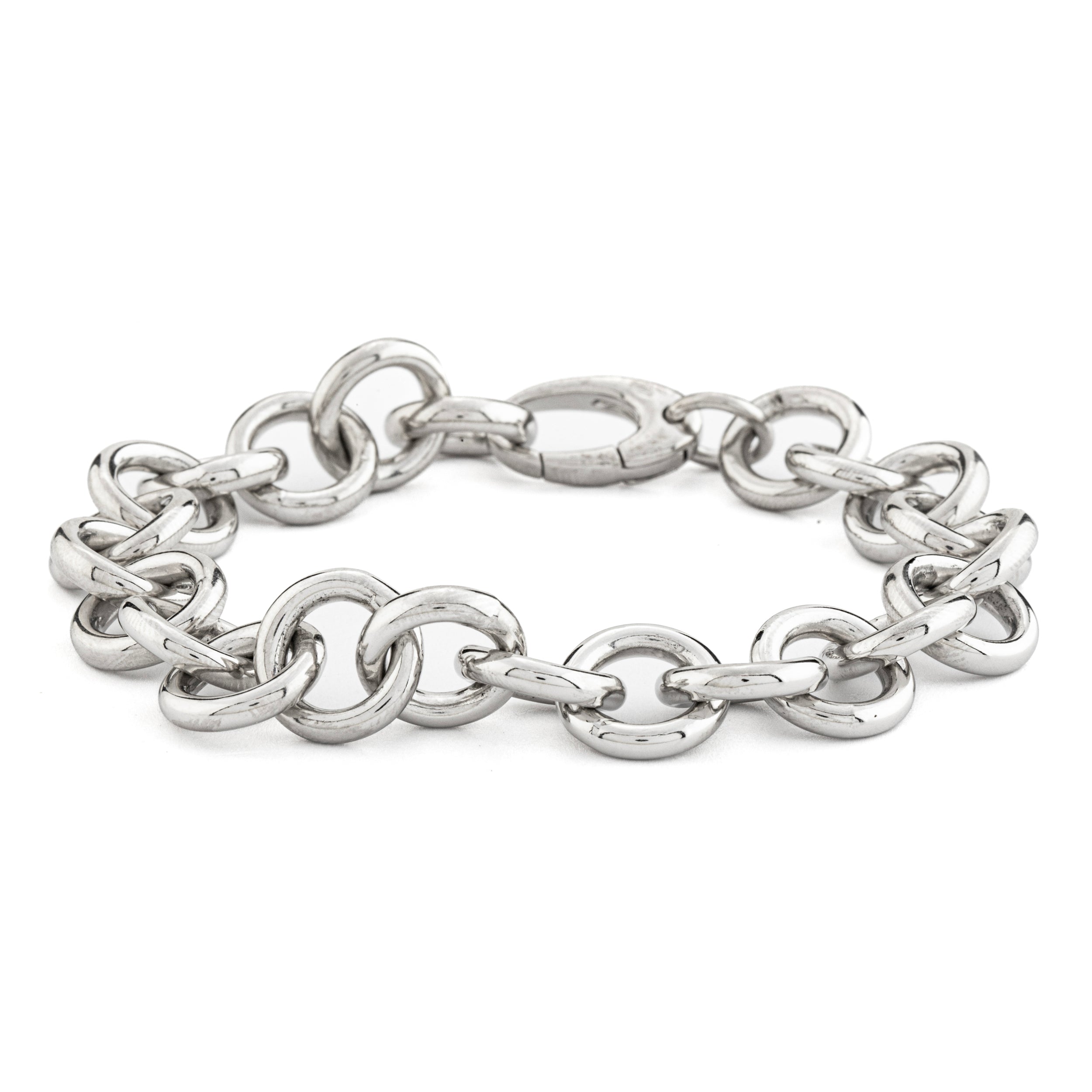 Esclusivo bracciale in argento 925 con maglia Zala, con composto da anelli ovali con sezione tubolare. Realizzato con materiali di alta qualità. Lunghezza di 18 centimetri.