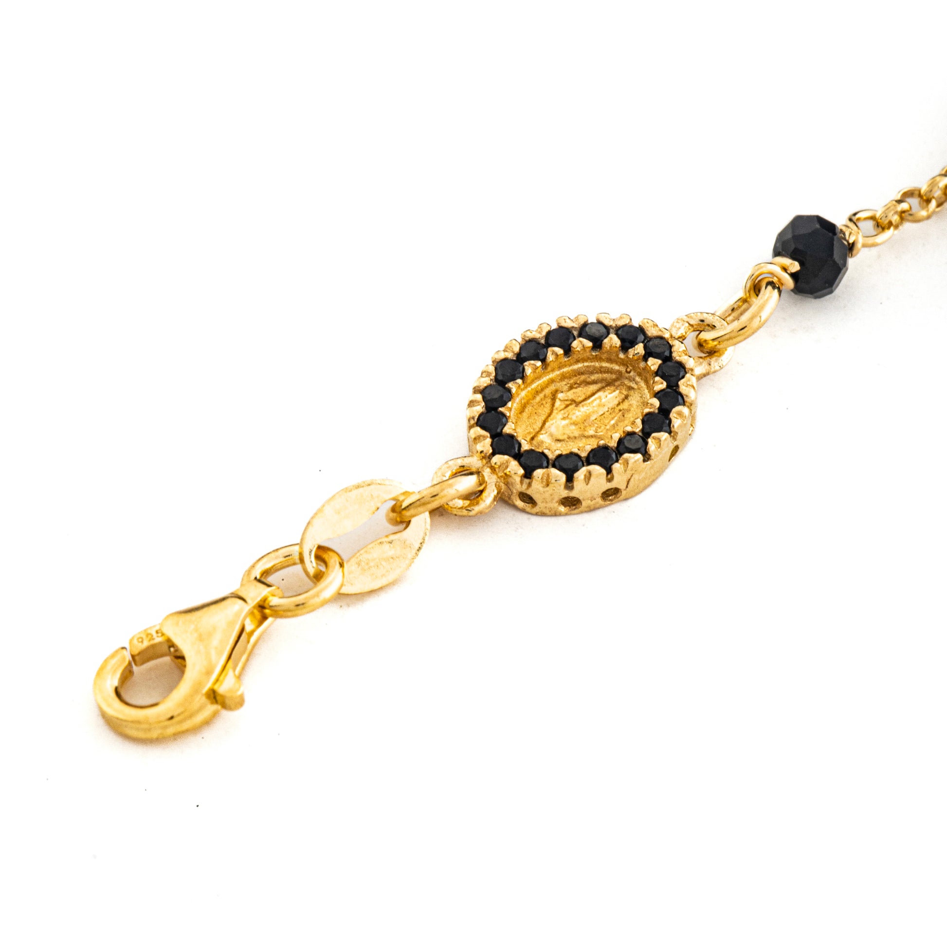 Bracciale argento 925. Con grani da 3mm e Madonna Miracolosa con Zirconi Neri