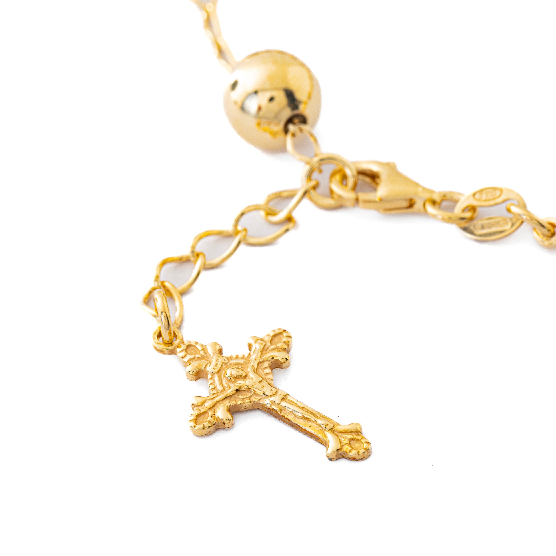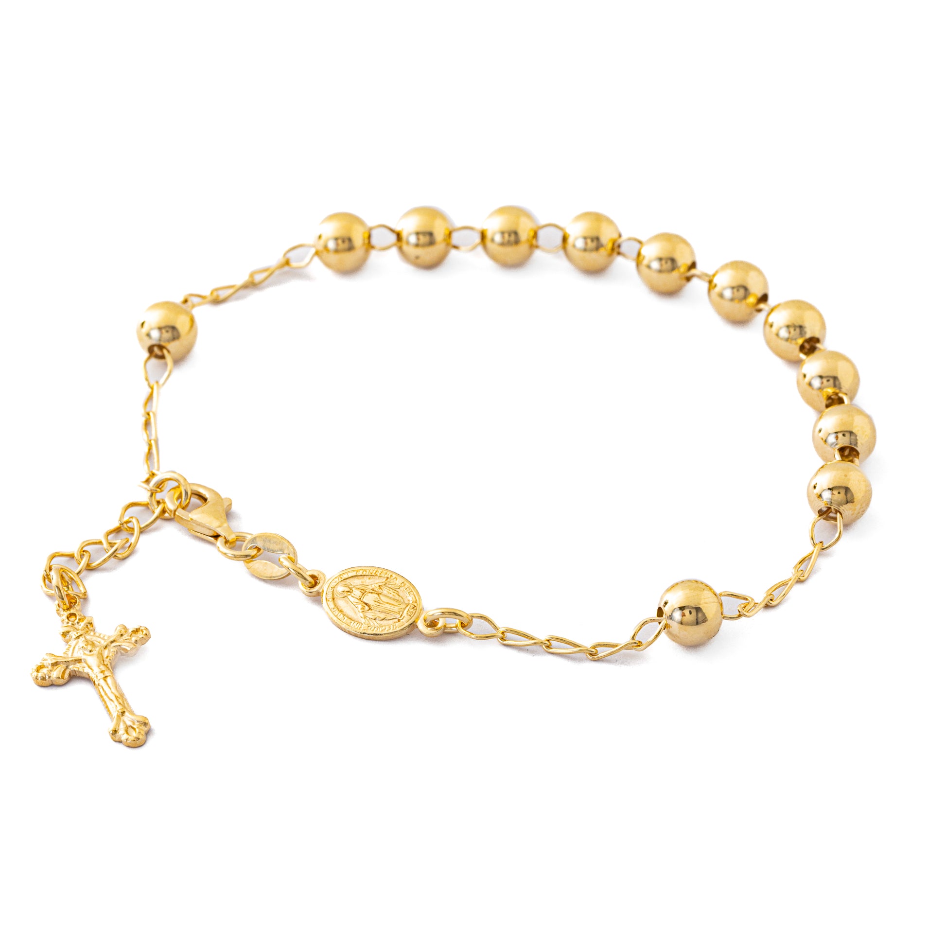 Esclusivo bracciale in argento 925. Con grani a decina da 6mm, questo bracciale è impreziosito da una medaglia della Madonna Miracolosa e Croce. Realizzato con materiali di alta qualità.