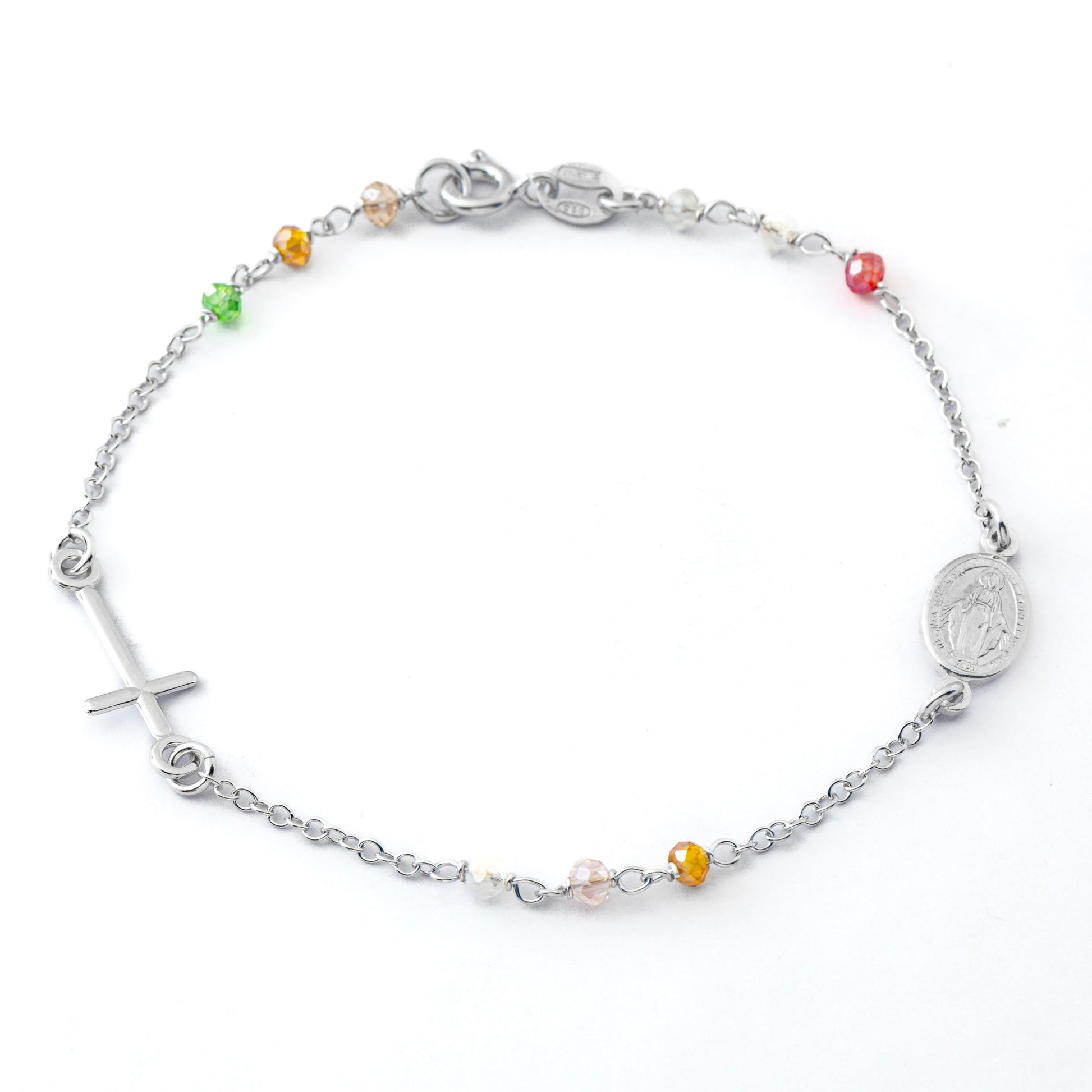 Bracciali argento 925. Con grani Multicolor da 2mm e Madonna Miracolosa