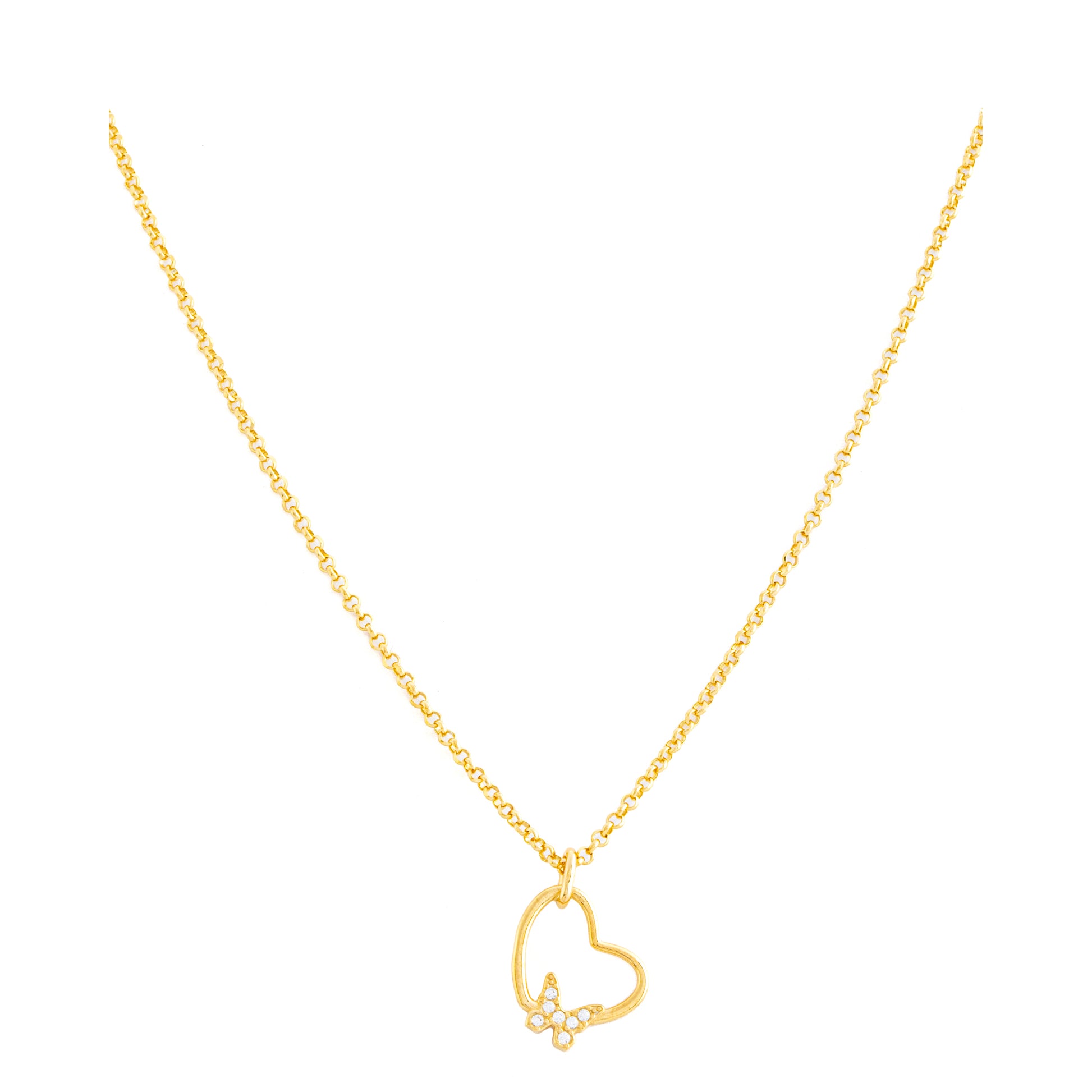 Esclusiva Collana Argento 925 di alta qualità con maglia rolò e cuore pendente e farfalla. Con una lunghezza di 46cm.
