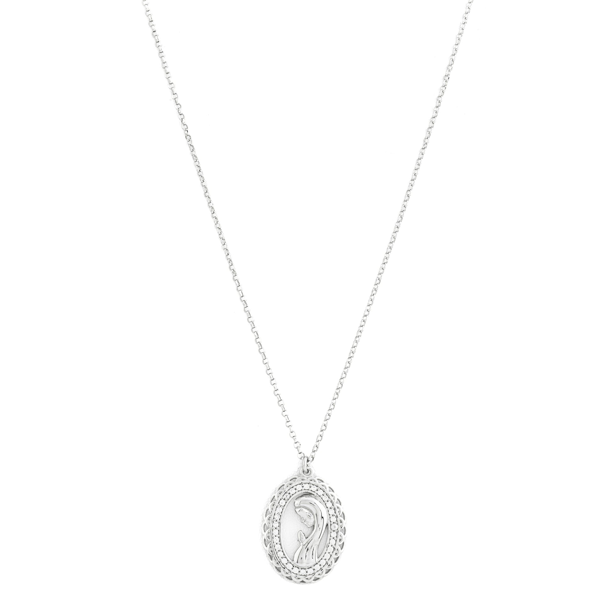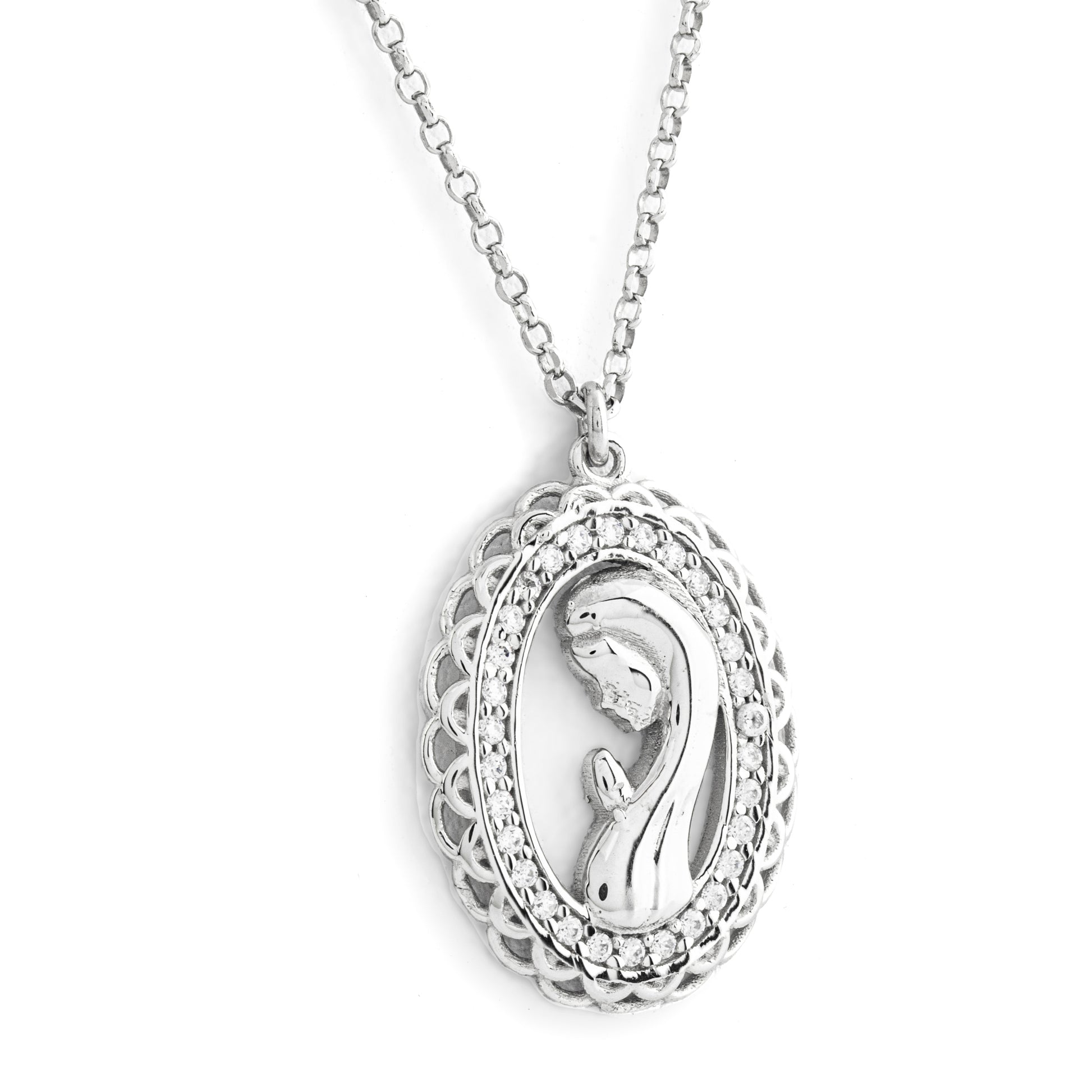 Esclusiva Collana Argento 925 di alta qualità con maglia rolò e cuore pendente e Madonna. Con una lunghezza di 46cm