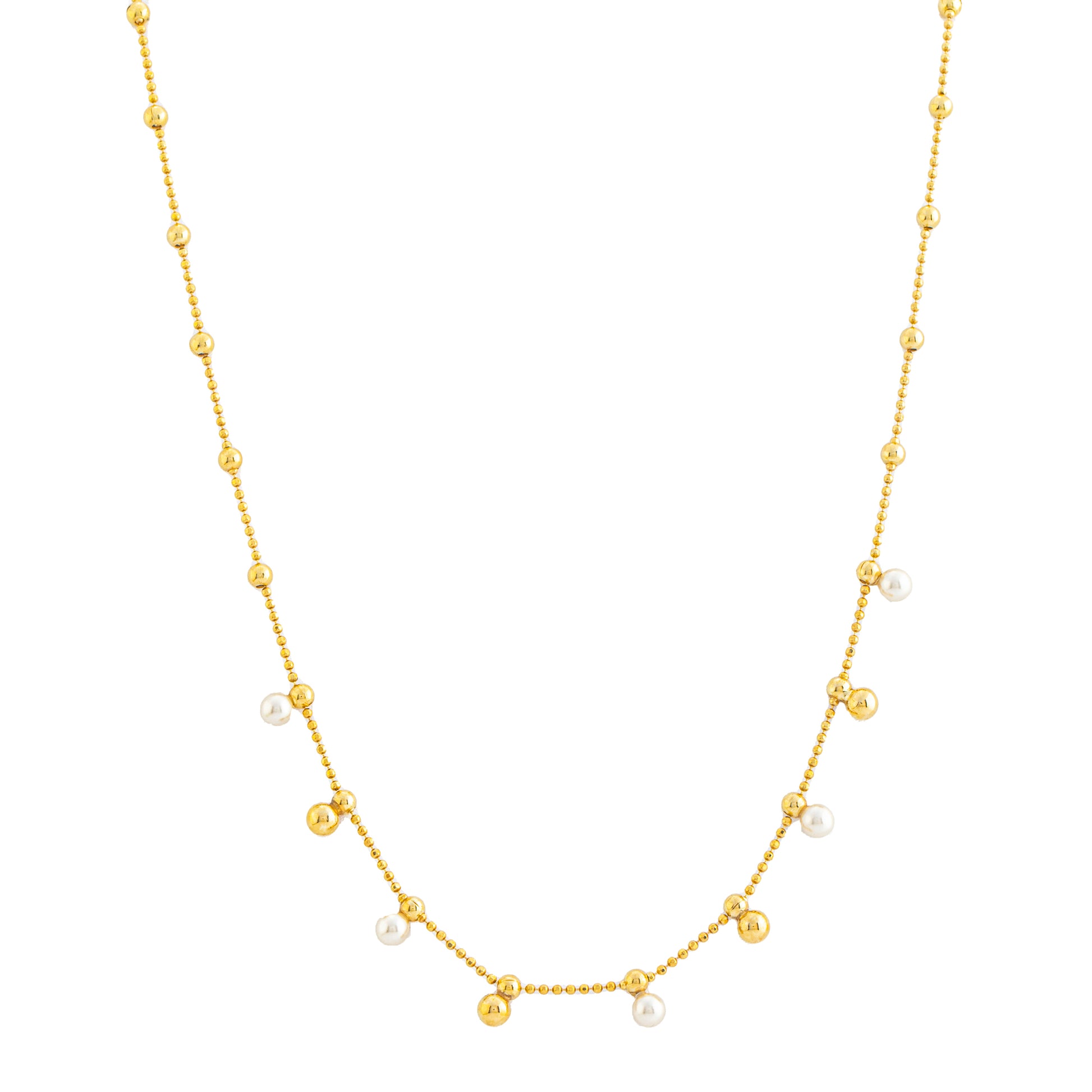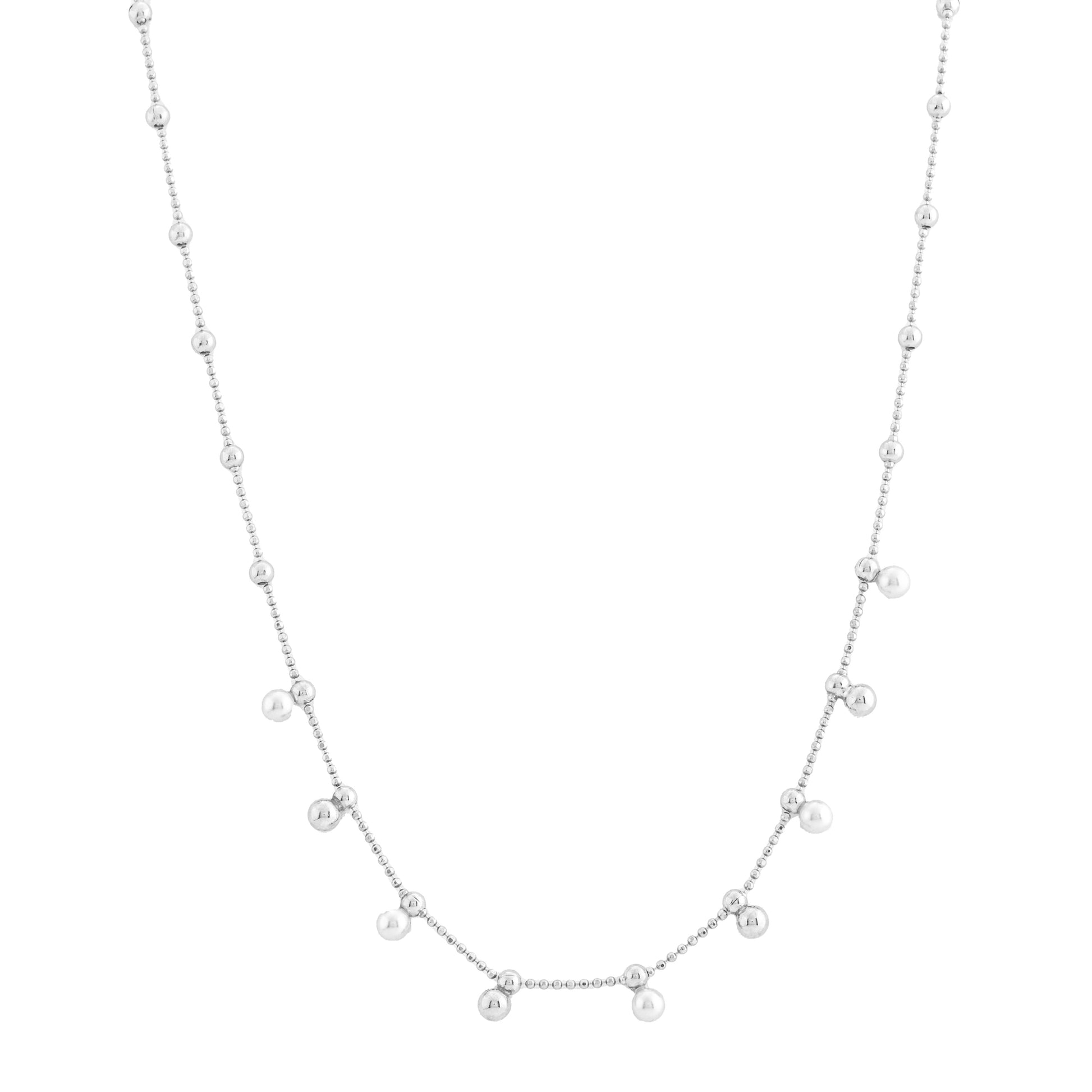 Collana Argento 925 di alta qualità. Questo gioiello raffinato presenta fantasia di perle sintetiche e grani pendenti.