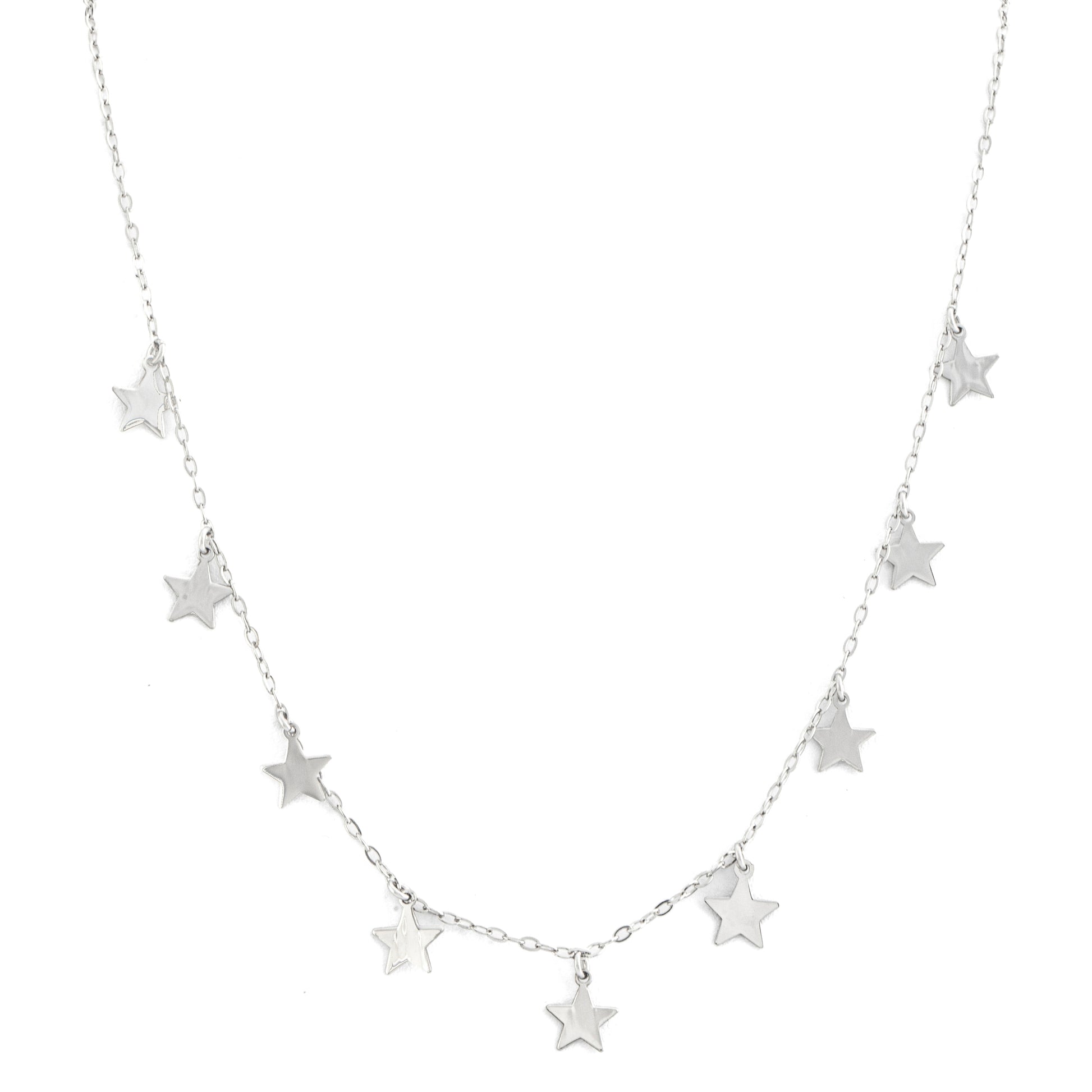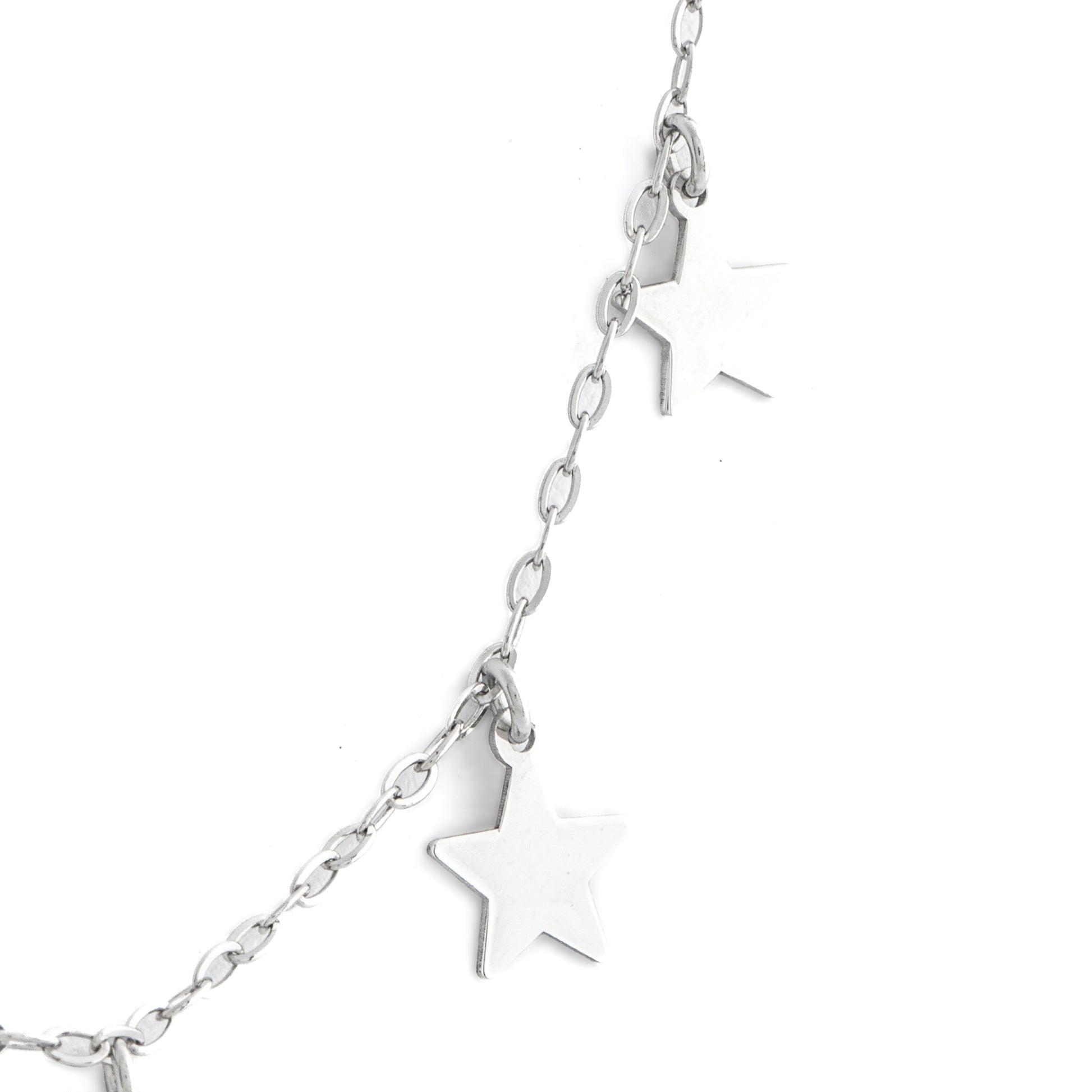 Esclusiva Collana Rosario in Argento 925 di alta qualità. Questo gioiello raffinato presenta fantasia di stelle. Con una lunghezza di 46cm e un'estensione aggiuntiva di 4cm, assicura una vestibilità comoda e personalizzabile.