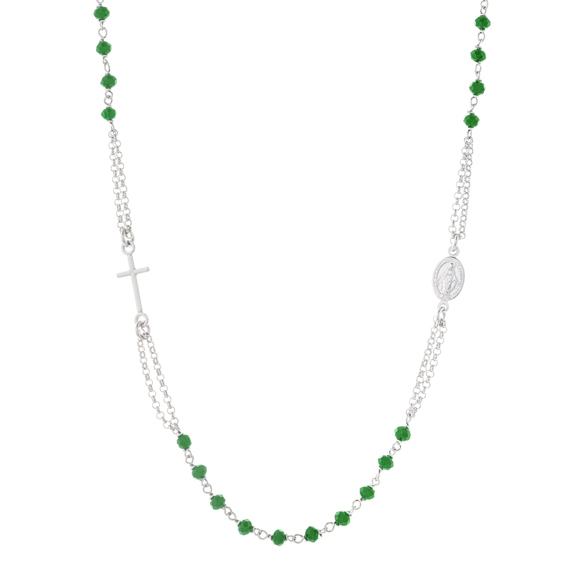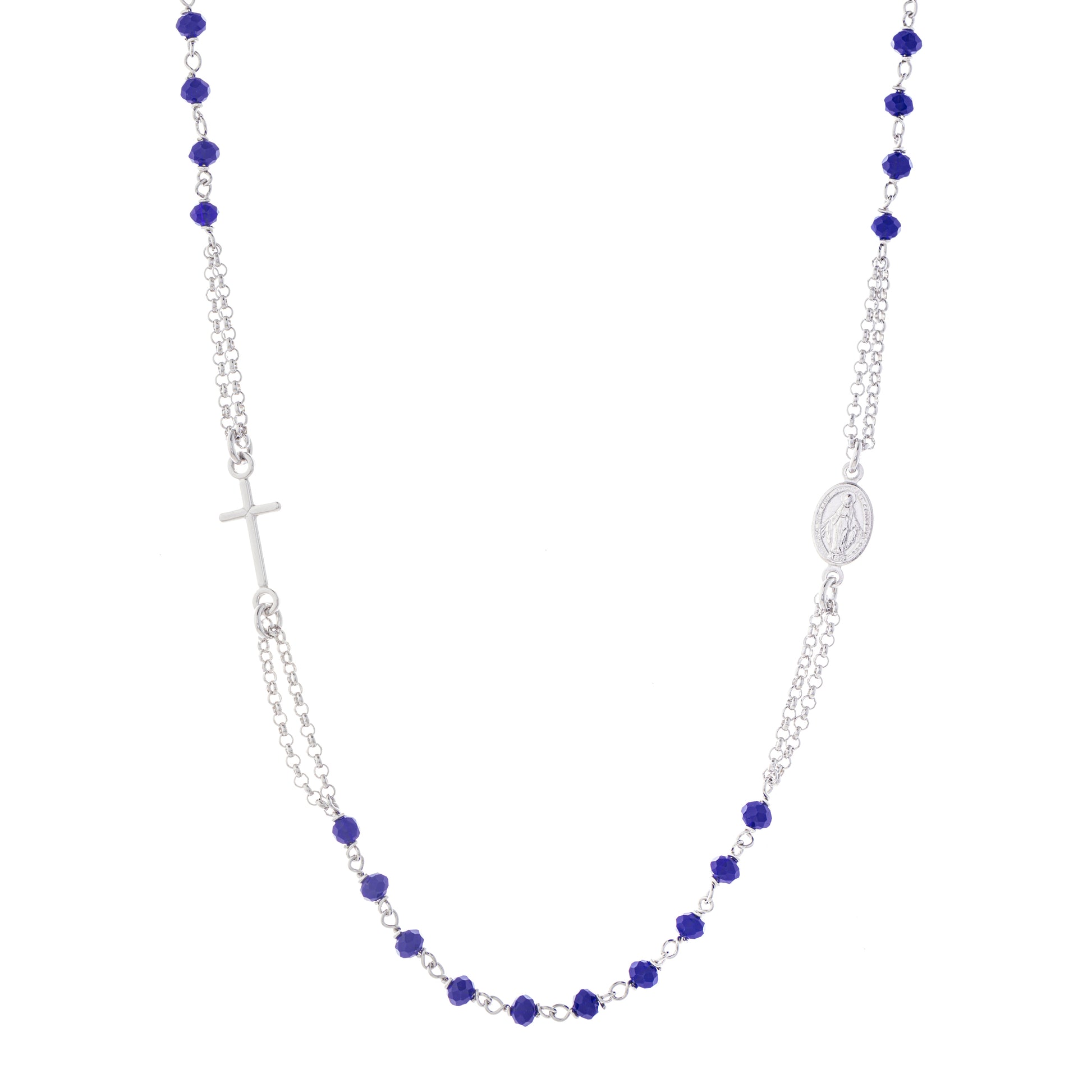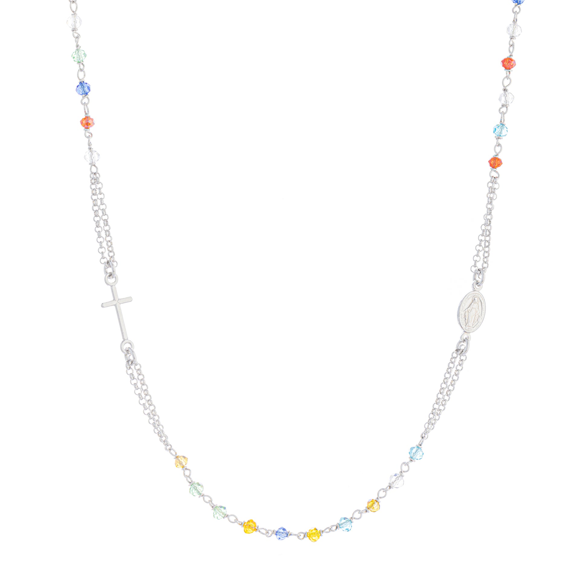 Collana doppio filo in Argento 925 con Medaglia Madonna Miracolosa e grani da 3mm