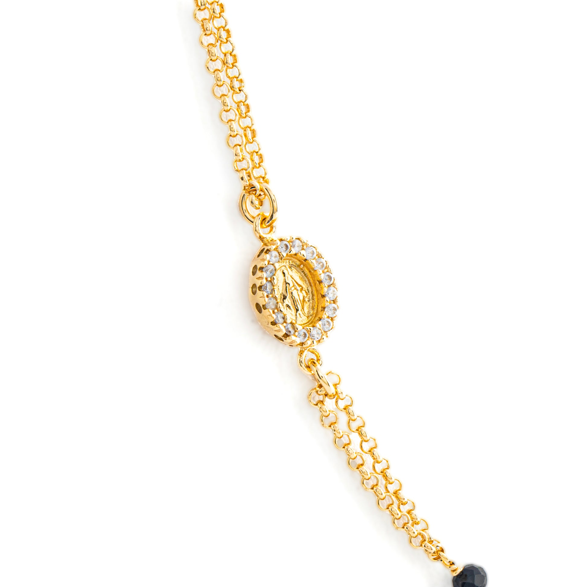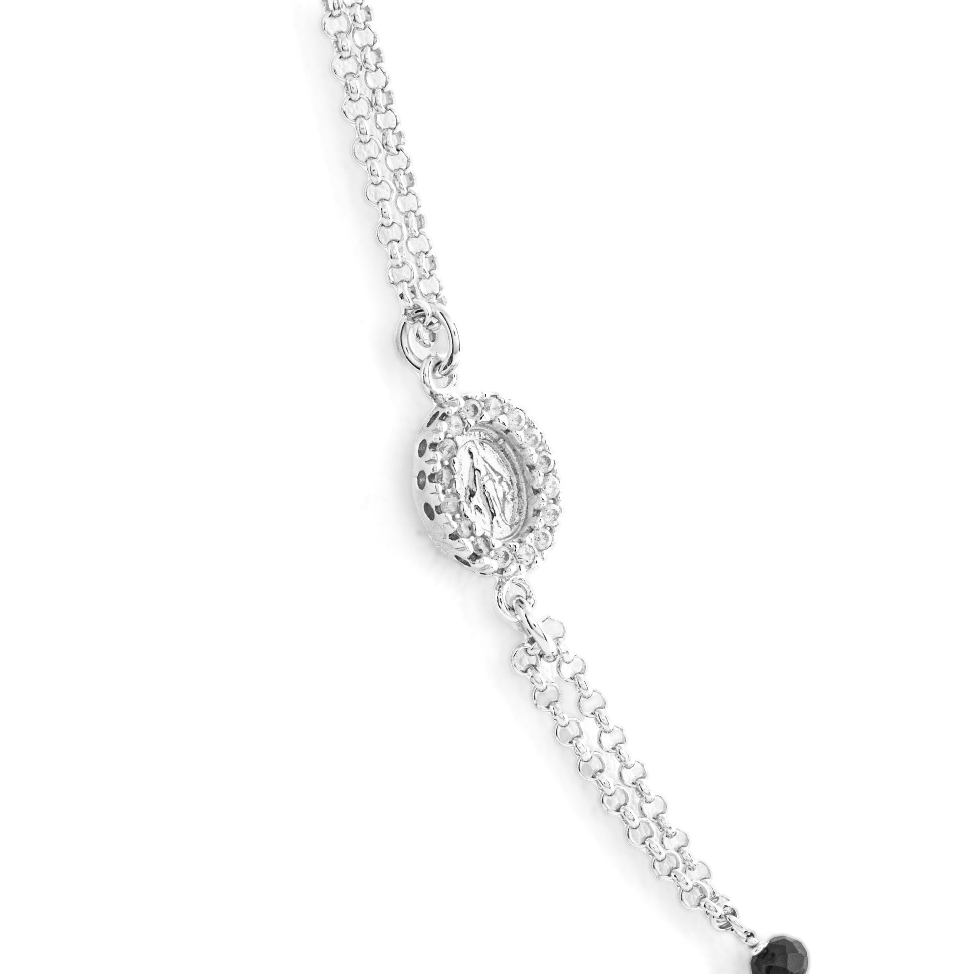 Collana Rosario in Argento 925 con Granni da 3mm con Madonna Miracolosa e zirconi bianchi