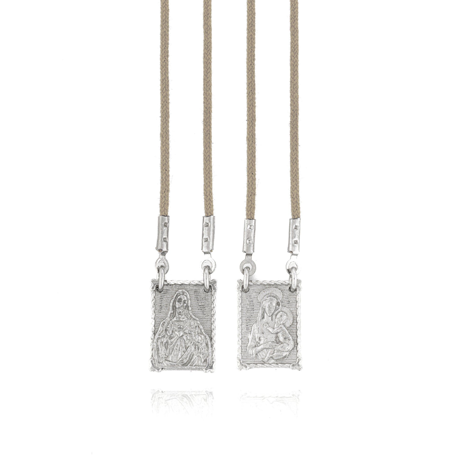 Collana Scapolare in argento 925 di alta qualità. Realizzata con cura e precisione, questa collana presenta un cordino di 70 cm con una delicata immagine di Gesù e della Vergine Maria. L'argento 925 garantisce qualità e durata nel tempo, mentre il design elegante rende questa collana adatta per ogni occasione. Porta con te la protezione e la benedizione di Maria e Gesù con la nostra collana Scapolare, un simbolo di fede e devozione. Piccola (s) mm 9 x 12.
