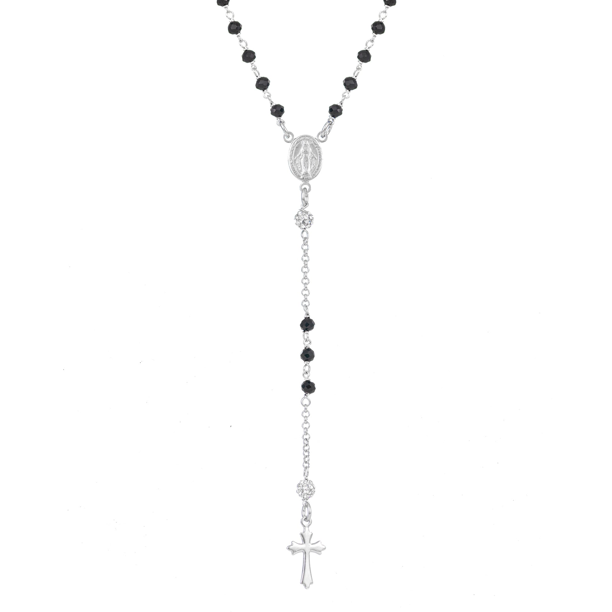 Rosario Madonna Miracolosa Nero grano da 3,5MM con palina con cristalli