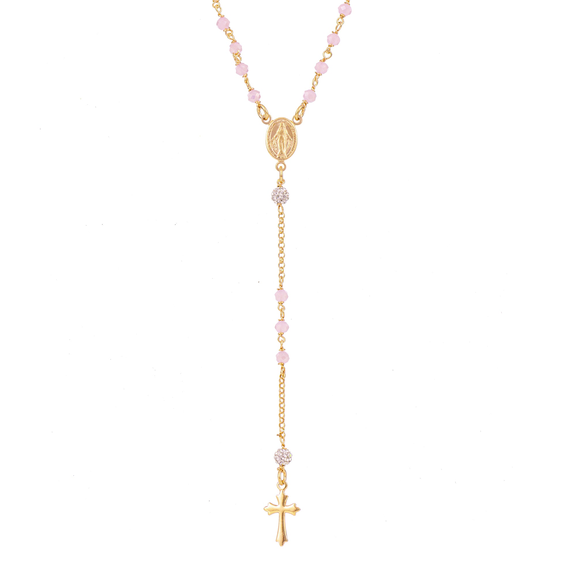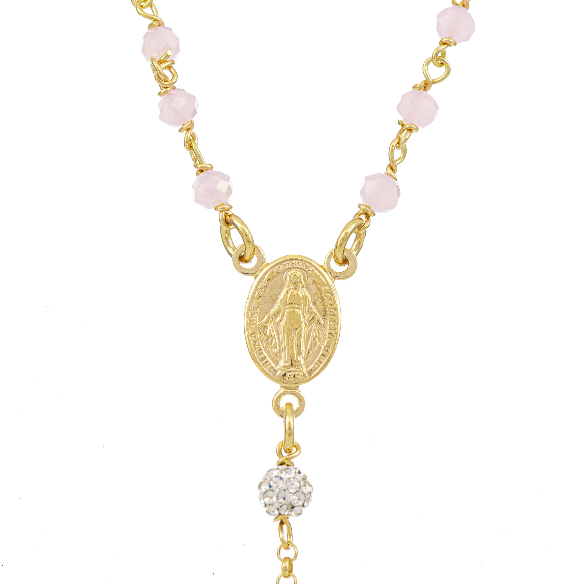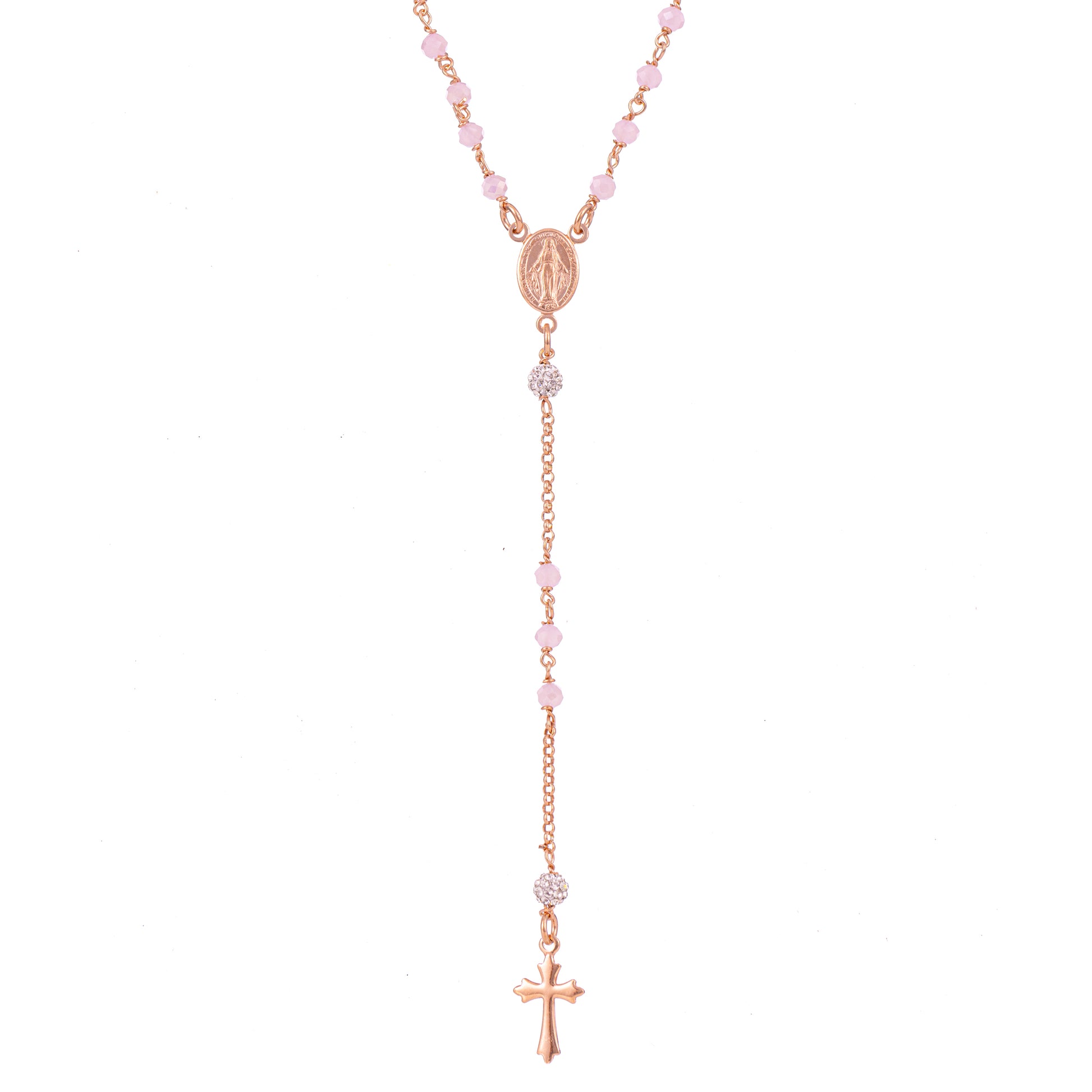 Rosario Madonna Miracolosa Rosa grano da 3,5MM con palina con cristalli