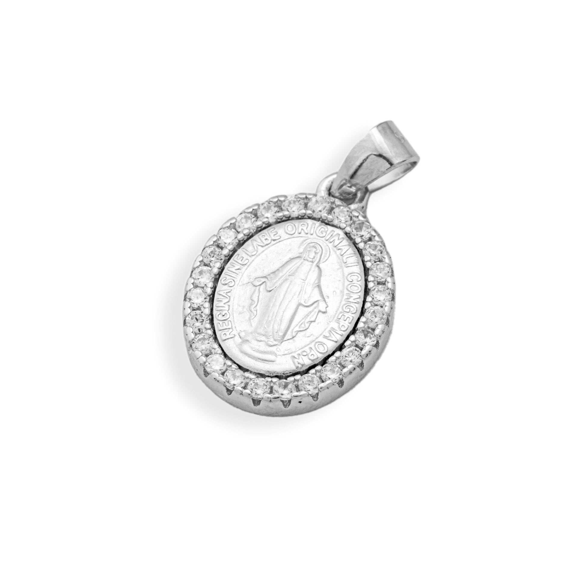 Medaglia Argento 925 Madonna Miracolosa Zirconi Bianchi