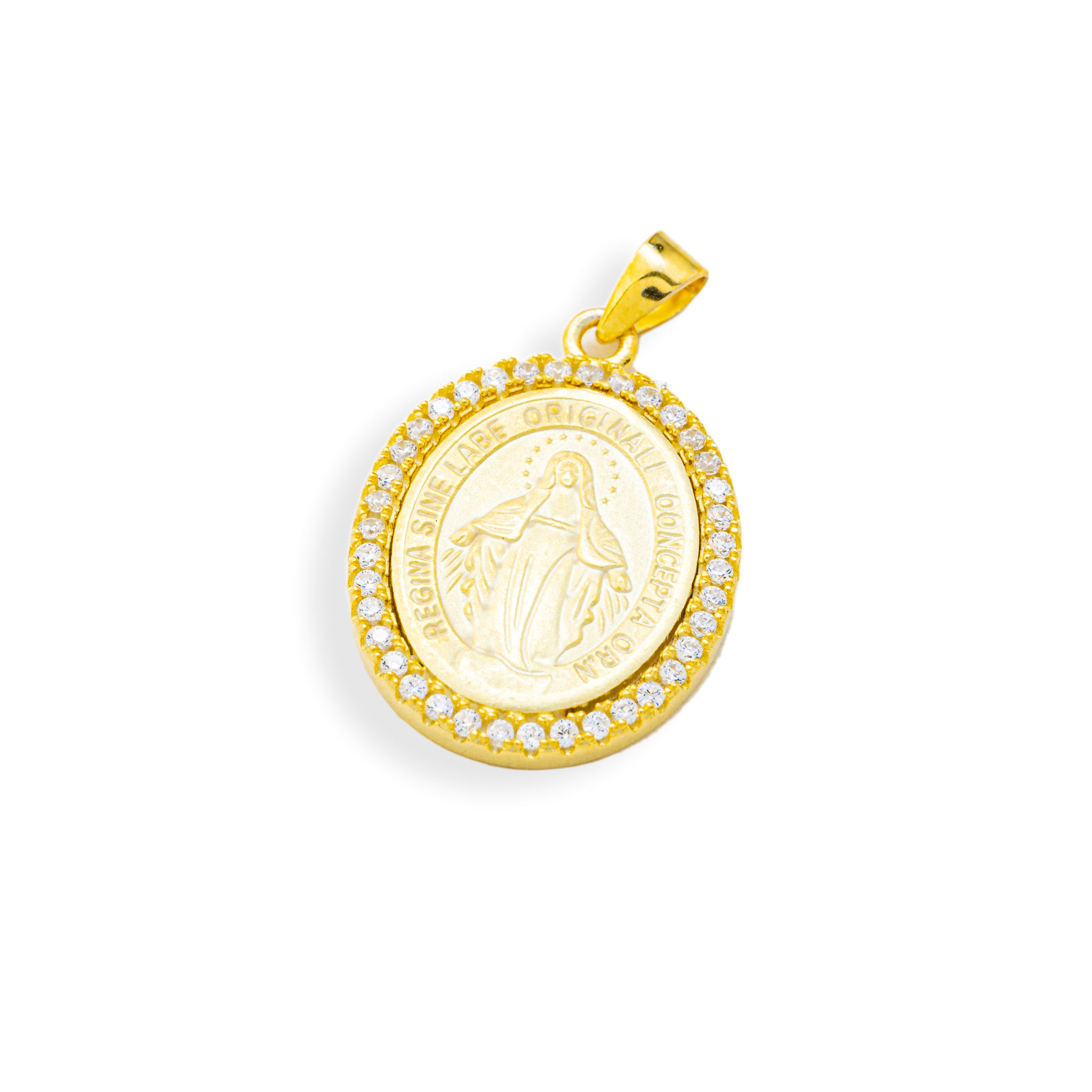 Medaglia Argento 925 Madonna Miracolosa Zirconi Bianchi