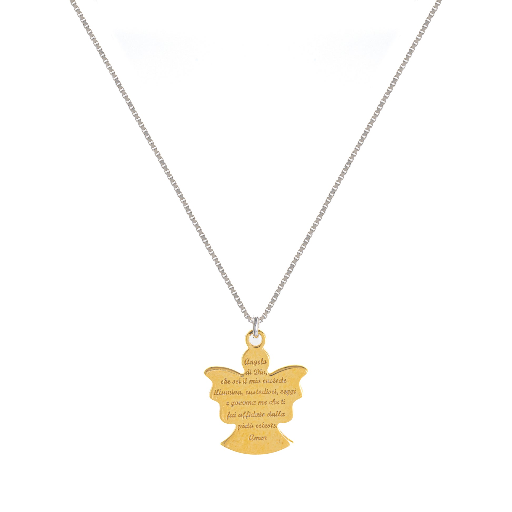 Collana con Angelo Pendente con Preghiera "Angelo di Dio"