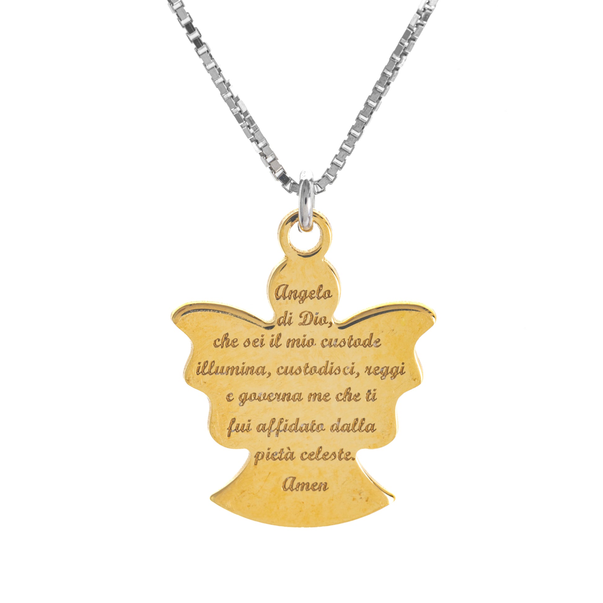 Esclusiva Collana Veneziana da 45cm in argento 925 con angelo pendente (in argento 925 dorato) con incisione a laser con la preghiera "Angelo di Dio". Realizzato con materiali di alta qualità.