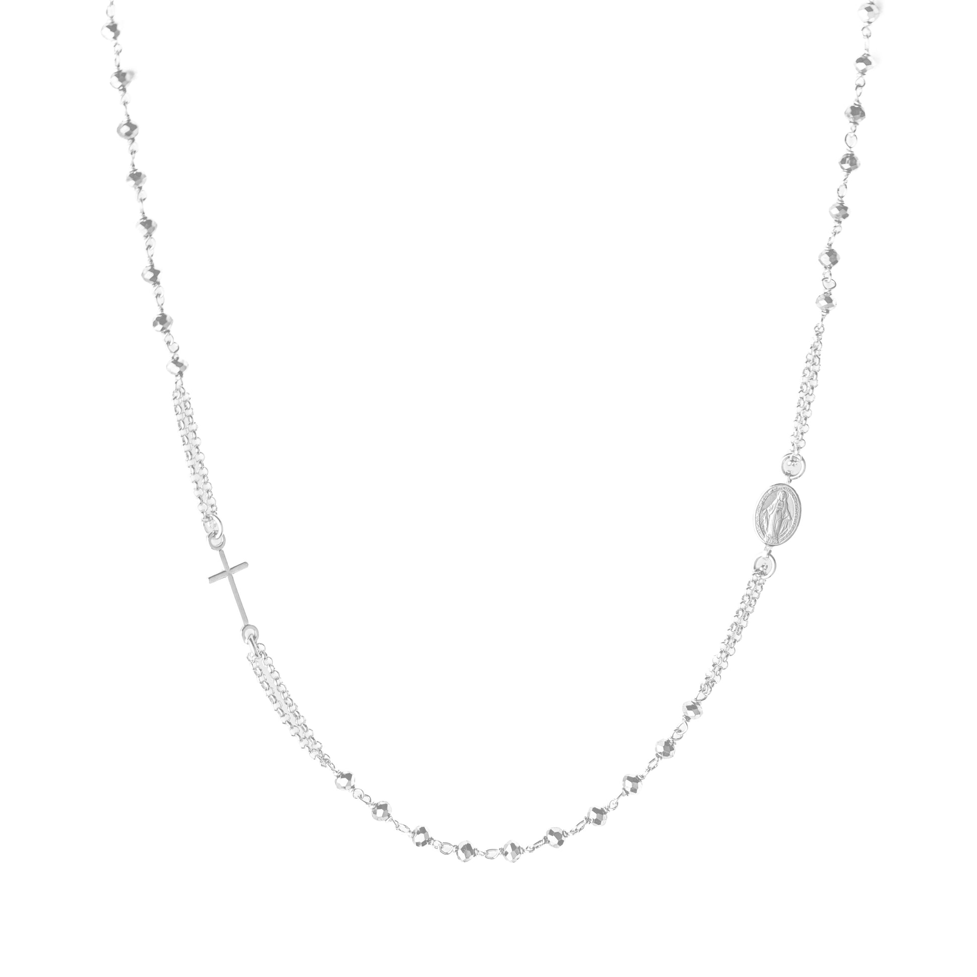 Collana Ematite doppio filo in Argento 925 con Medaglia Madonna Miracolosa e grani da 3mm