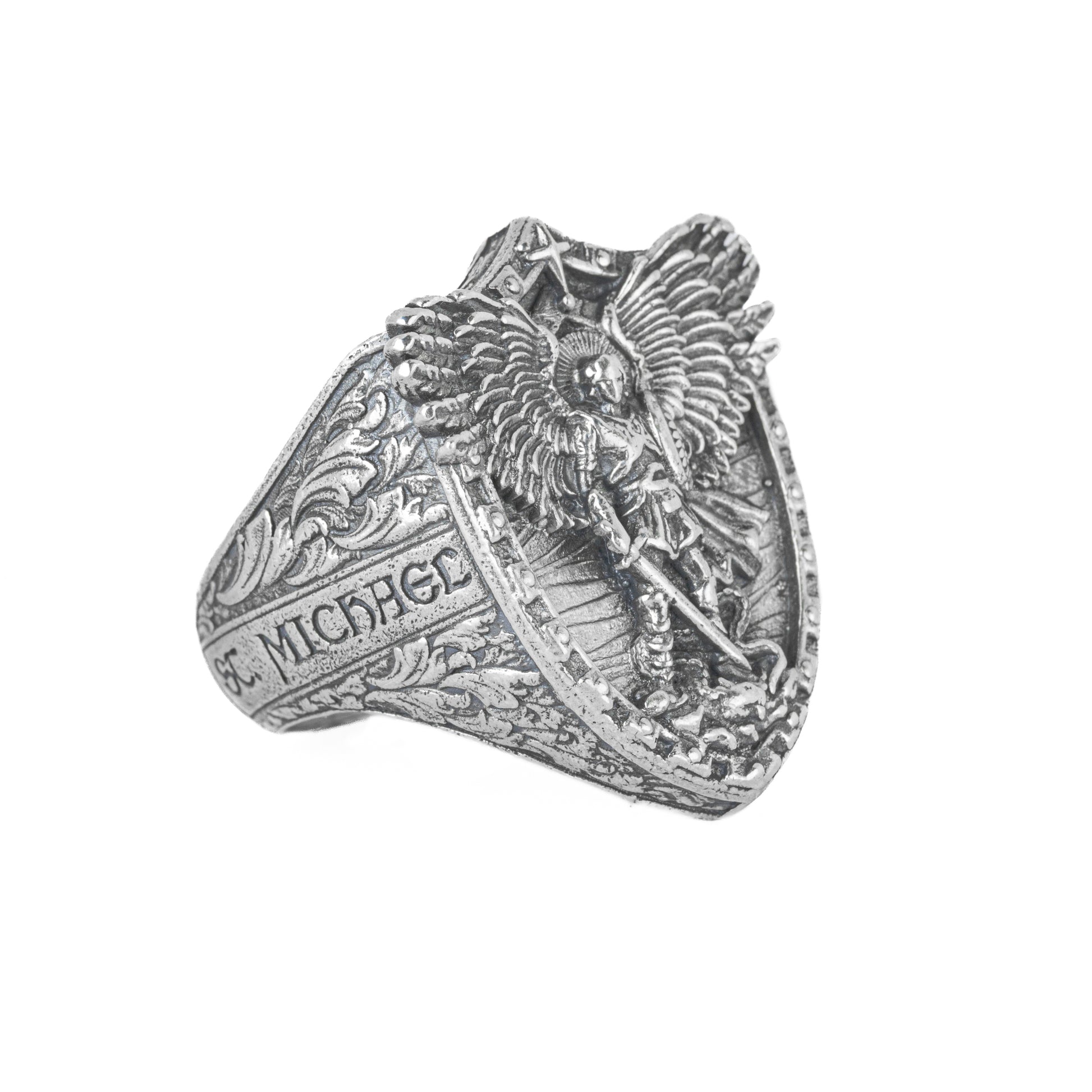 Anello da Uomo "Arcangelo San Michele" in Argento 925. Ossidato.