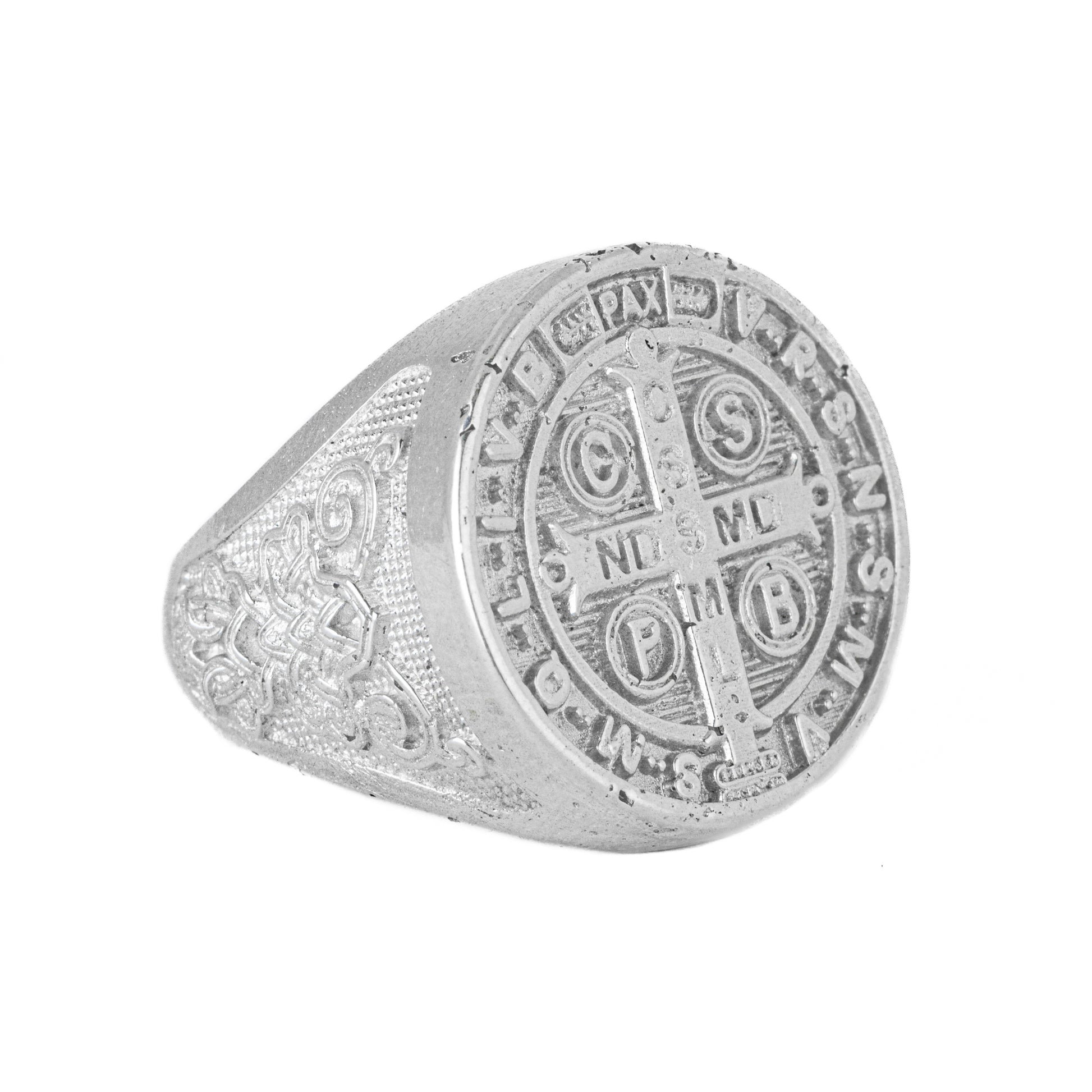 Il nostro anello da uomo "San Benedetto", un pezzo artigianale che combina fede ed eleganza. Meticolosamente realizzato a mano, questo anello è fatto di argento 925 della più alta qualità, garantendo durata e una finitura impeccabile. Questo anello presenta un'immagine dettagliatamente intricata della Medaglia "San Benedetto". Ogni anello è accuratamente realizzato a mano da esperti artigiani, garantendo un'attenzione meticolosa a ogni dettaglio.