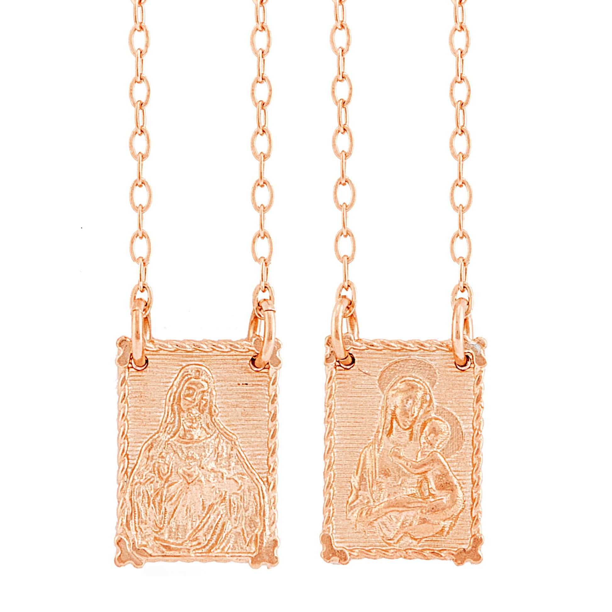 Collana Scapolare in argento 925 di alta qualità. Realizzata con cura e precisione, questa collana presenta una catena di 70 cm con una delicata immagine di Gesù e della Vergine Maria. L'argento 925 garantisce qualità e durata nel tempo, mentre il design elegante rende questa collana adatta per ogni occasione. Porta con te la protezione e la benedizione di Maria e Gesù con la nostra collana Scapolare, un simbolo di fede e devozione. Grande (L) mm 11 x 15