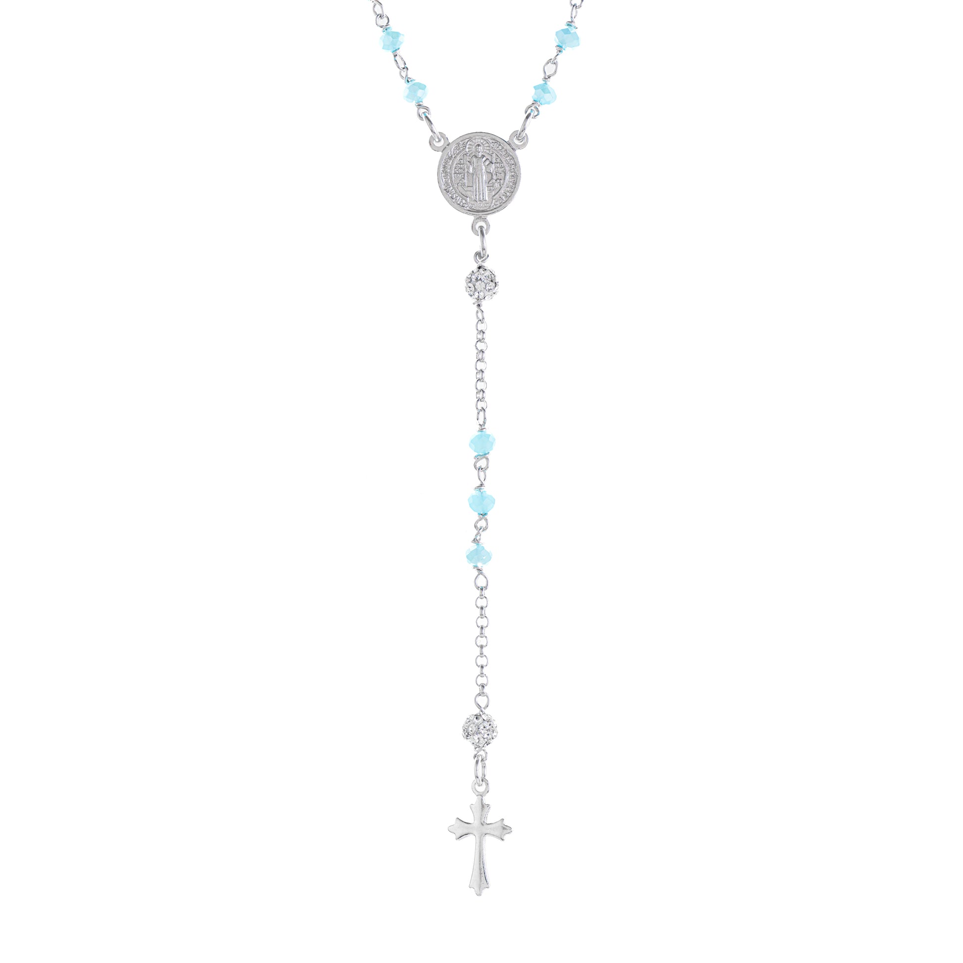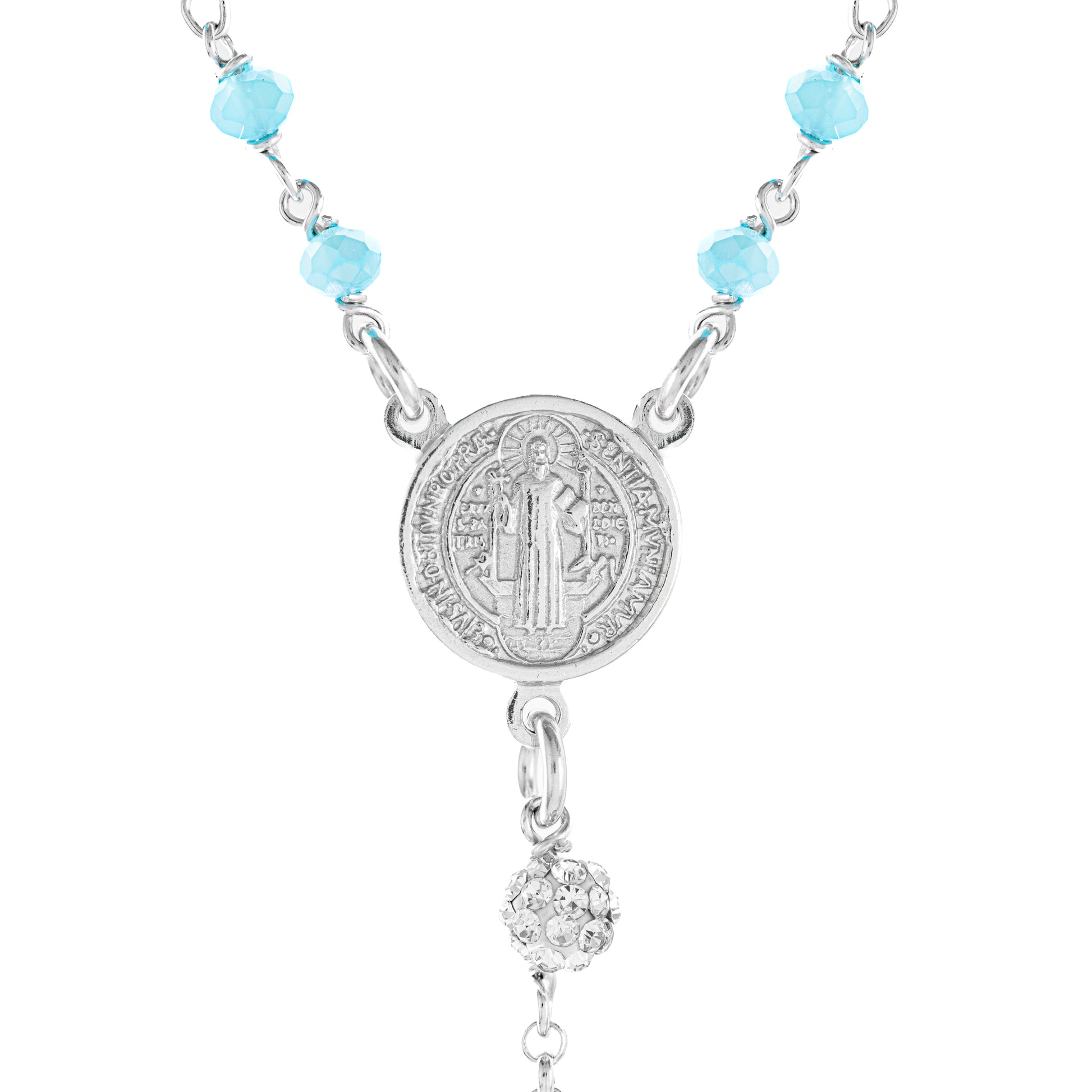 Rosario Argento 925 con Medaglia di San Benedetto. Grano da 3,5 mm. Celeste.