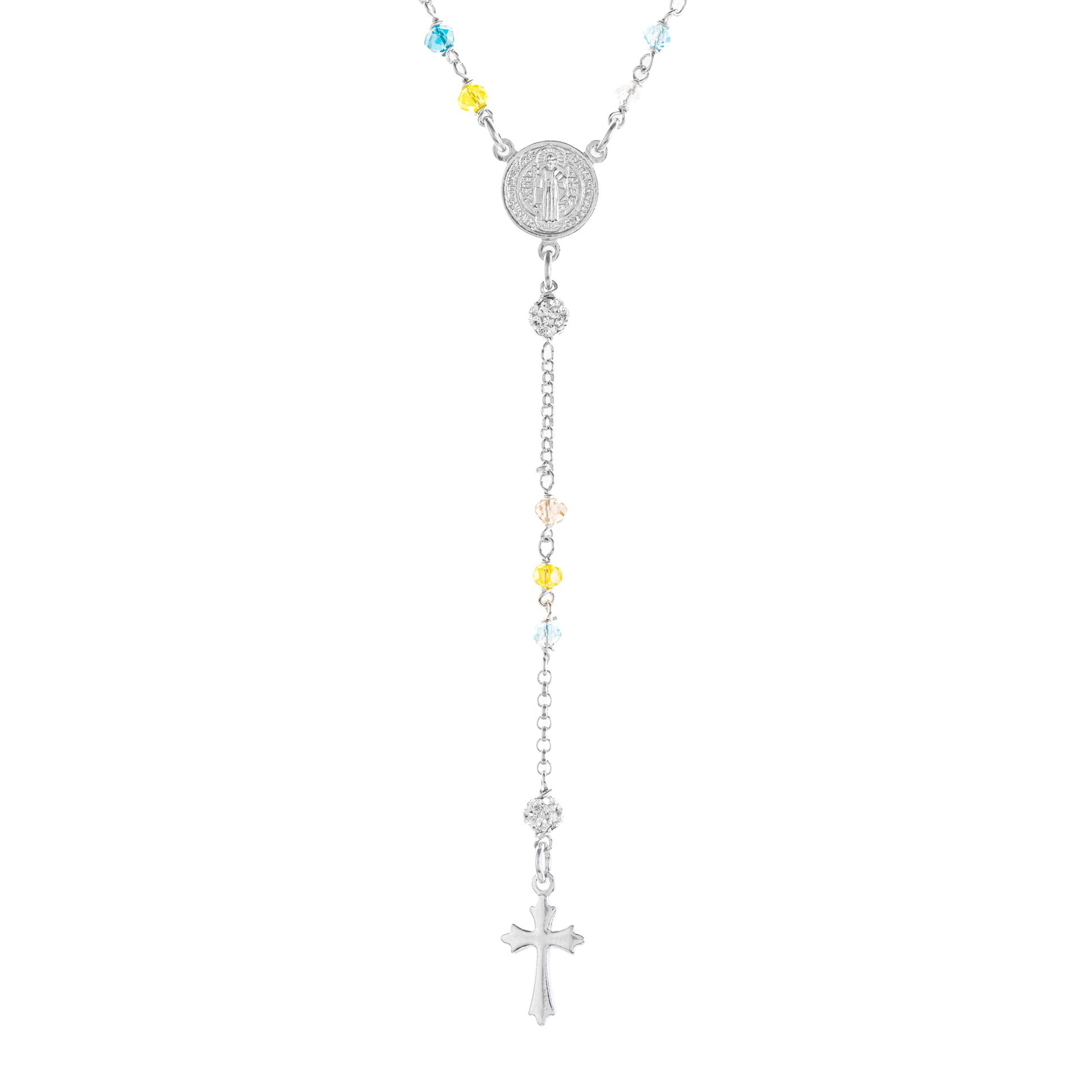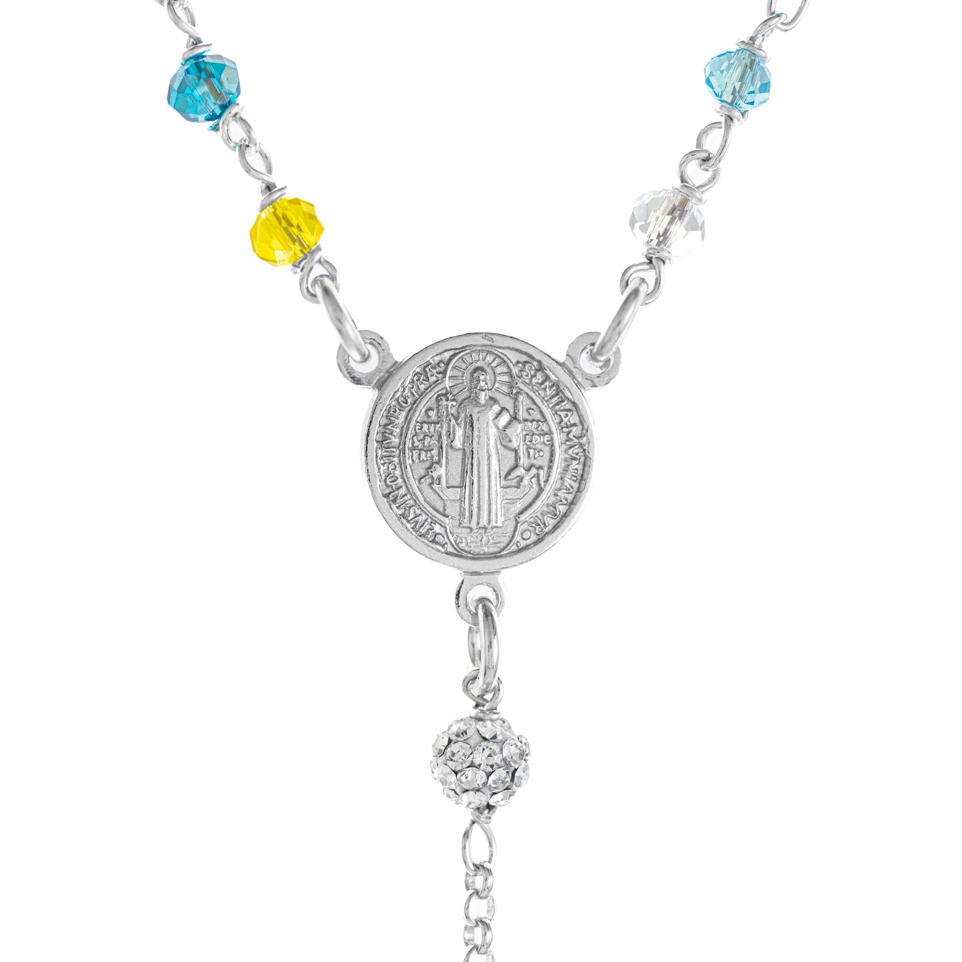Rosario Argento 925 e Medaglia di San Benedetto. Grani Multicolor da 3,5 mm