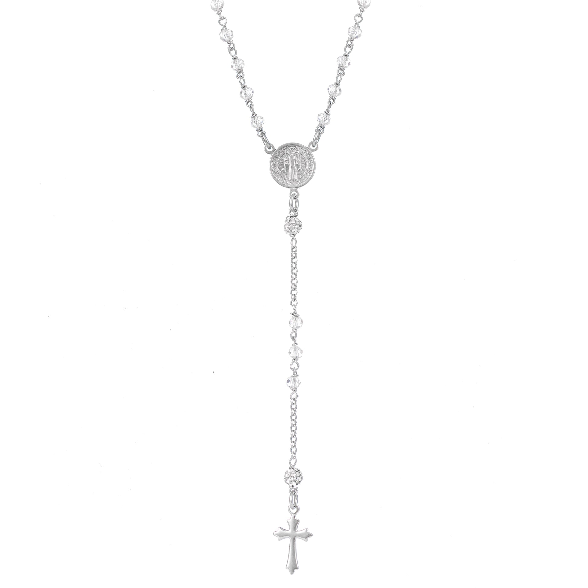 Rosario Argento 925 e Medaglia di San Benedetto. Grani Trasparenti da 3,5 mm