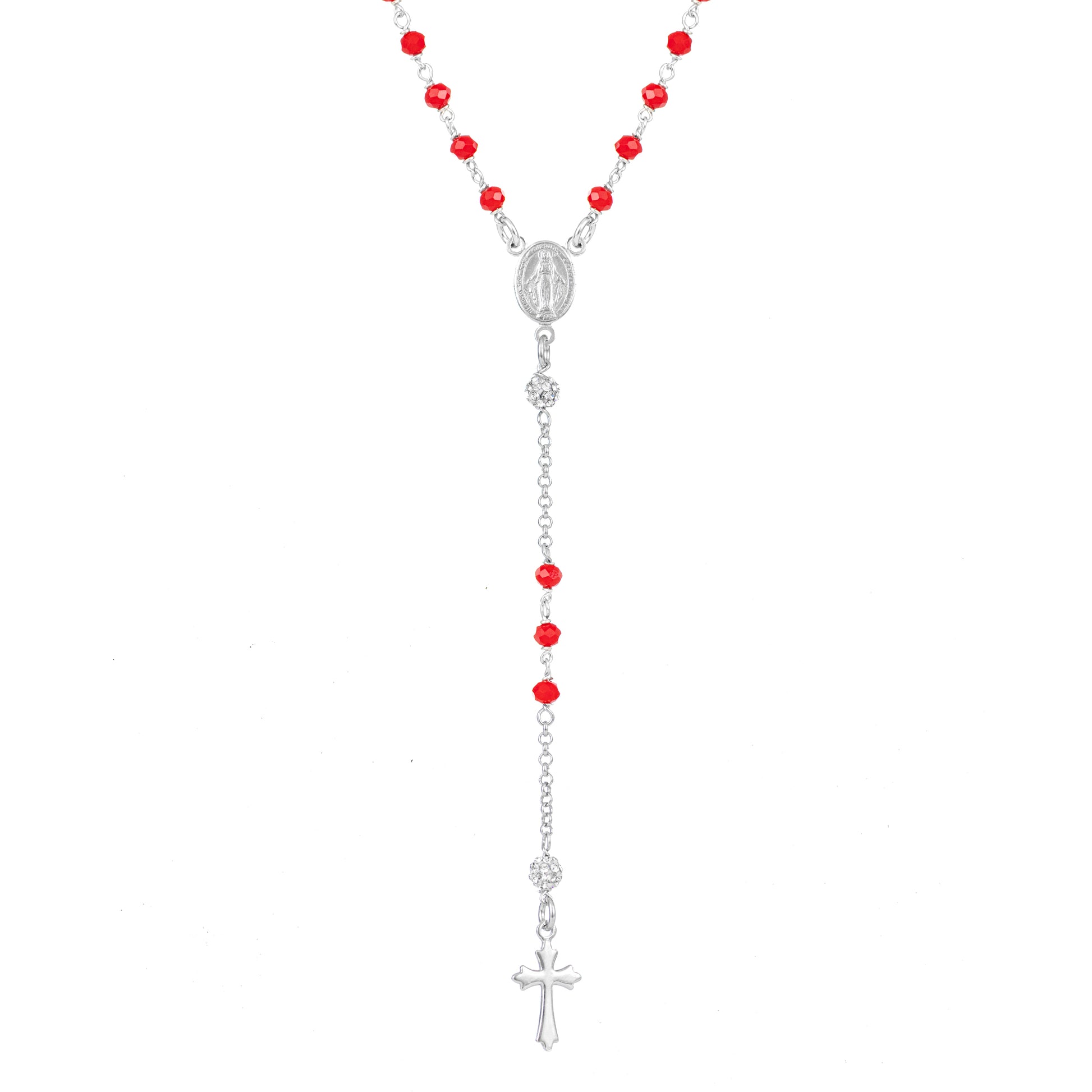Rosario Madonna Miracolosa Rosso grano da 3,5MM con palina con cristalli