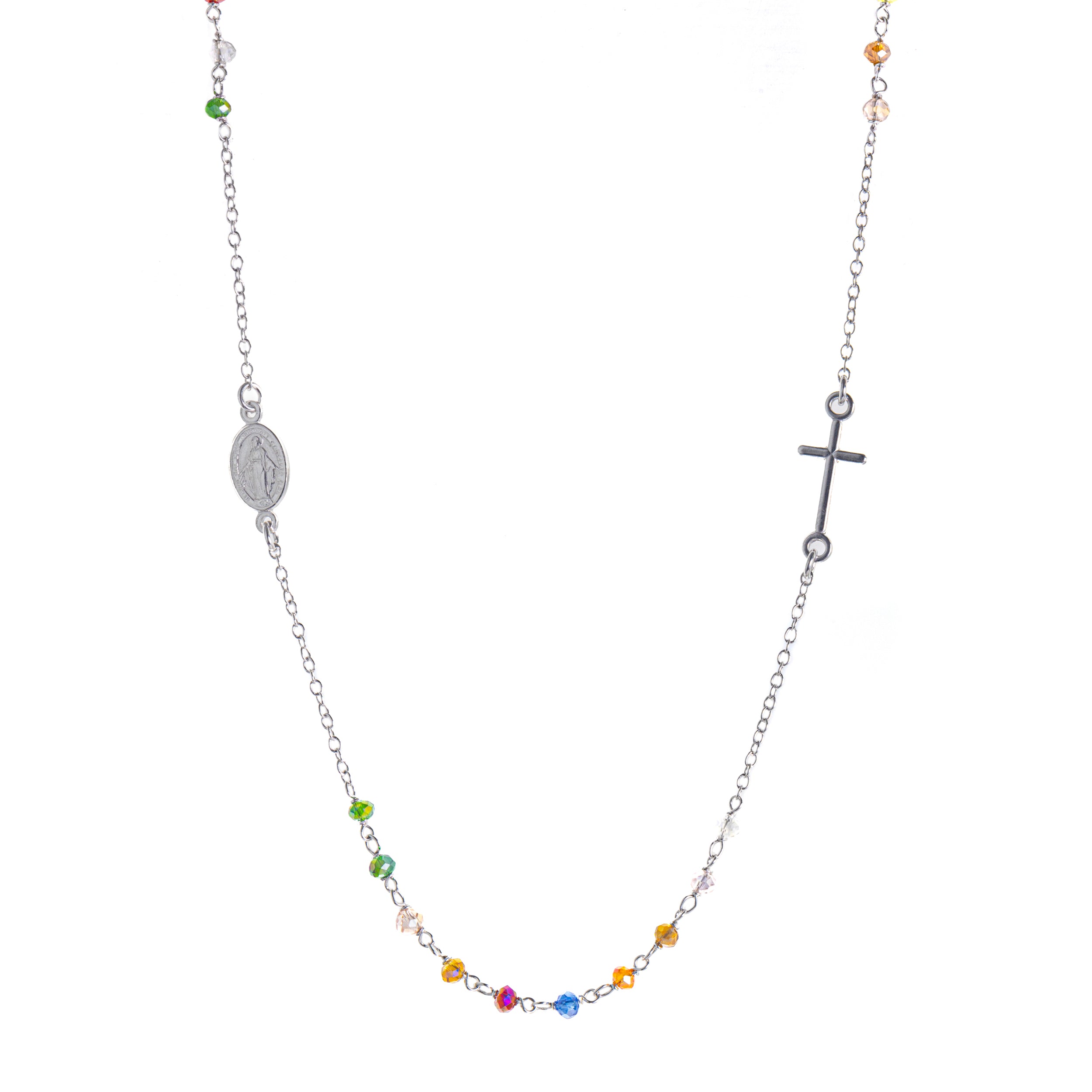 Collana in Argento 925 di con Grani da 2mm e Madonna Miracolosa.