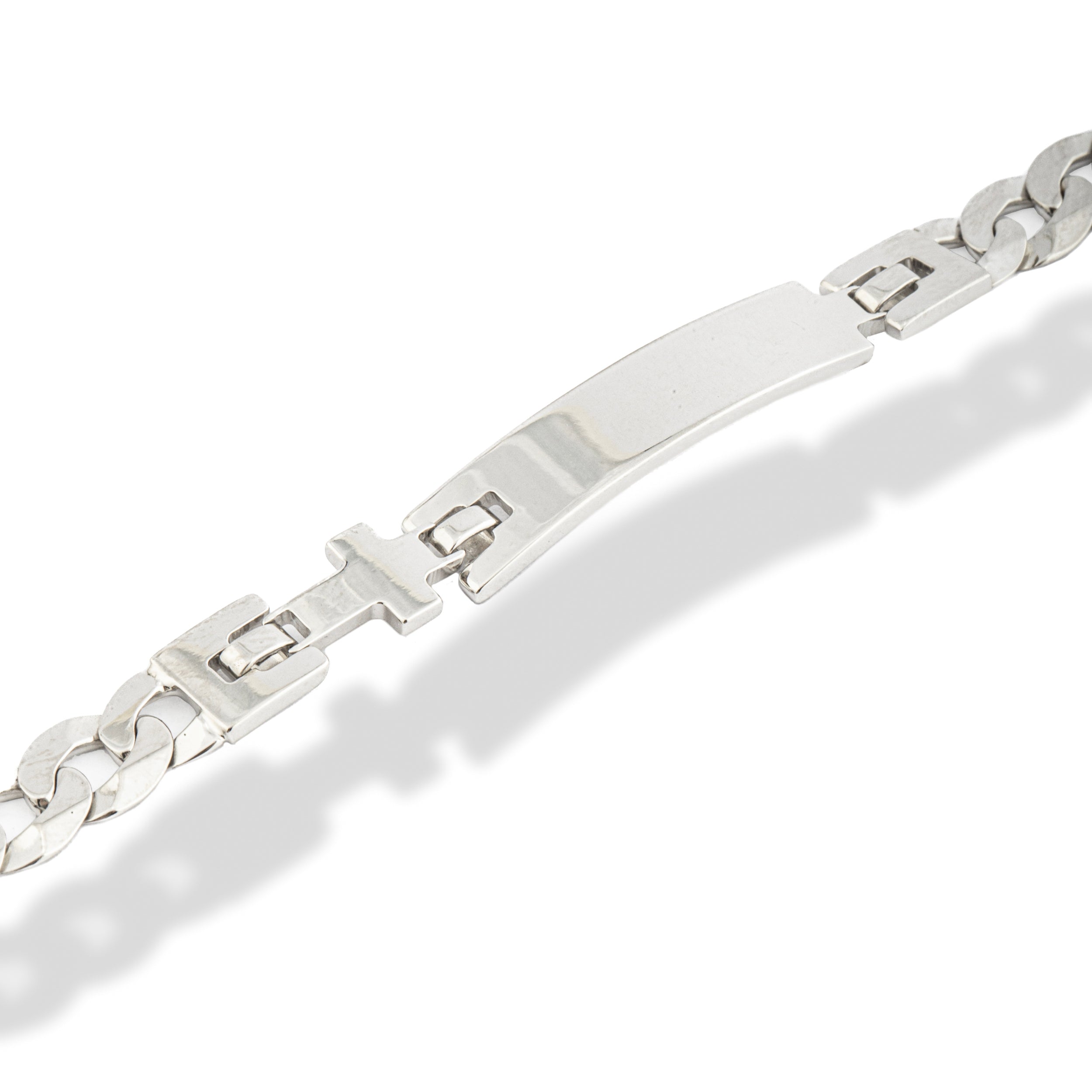 Esclusivo bracciale in argento 925 con piastra spazzolata lucida Realizzato con materiali di alta qualità. Lunghezza catena 18cm. Estensione: 4cm. Piastra: 3cm x 8mm x 1,5mm