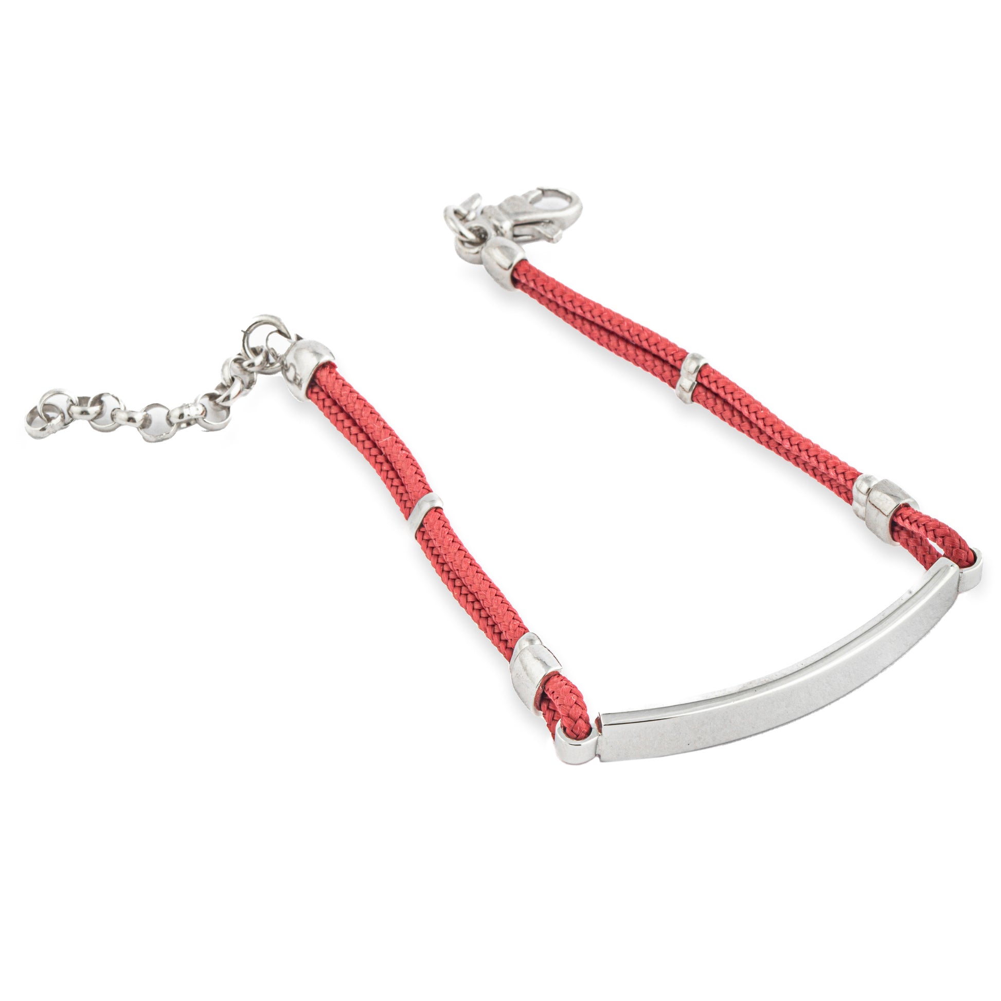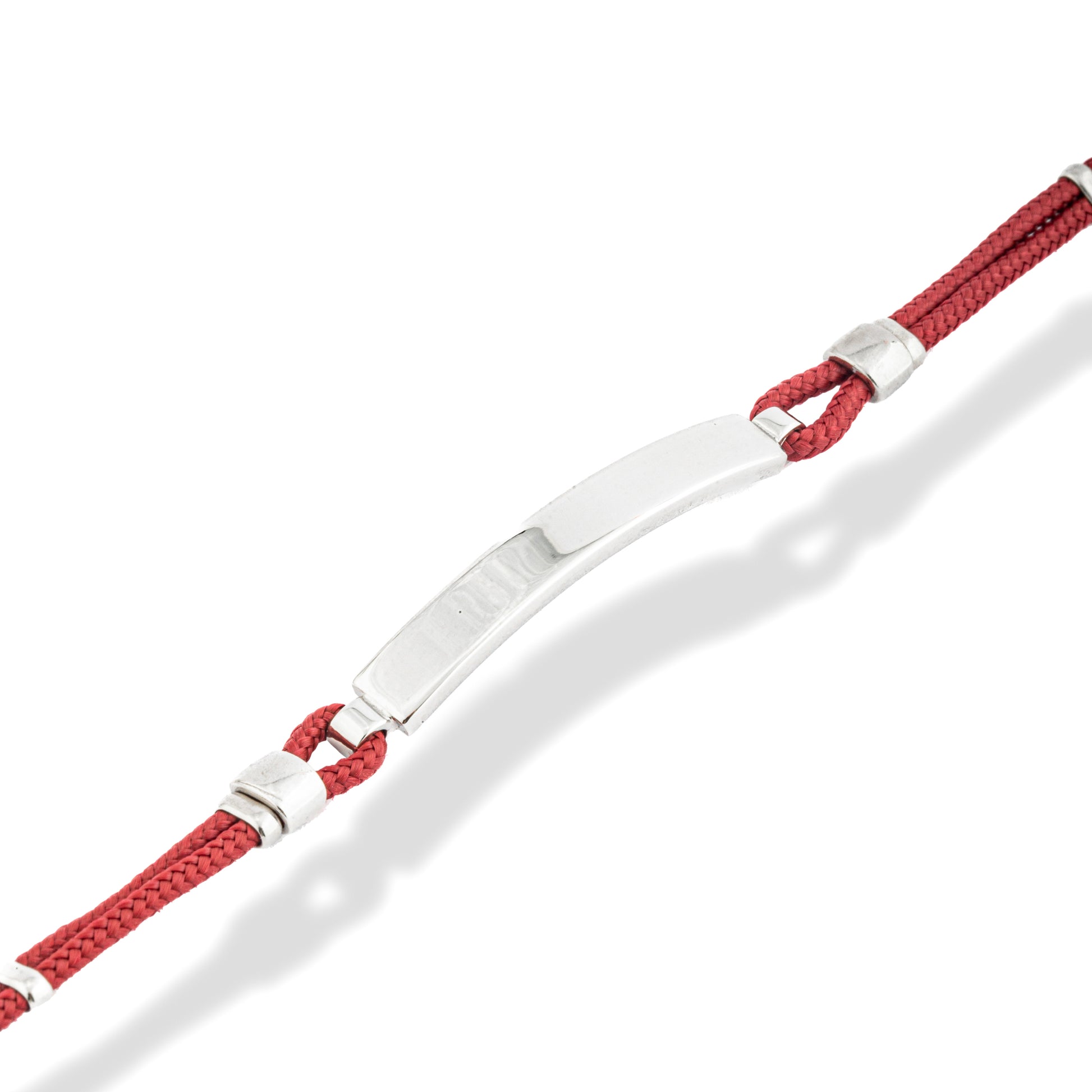 Esclusivo bracciale in argento 925 con piastra e cordino Realizzato con materiali di alta qualità. Lunghezza di 17 cm + estensione 3,5cm