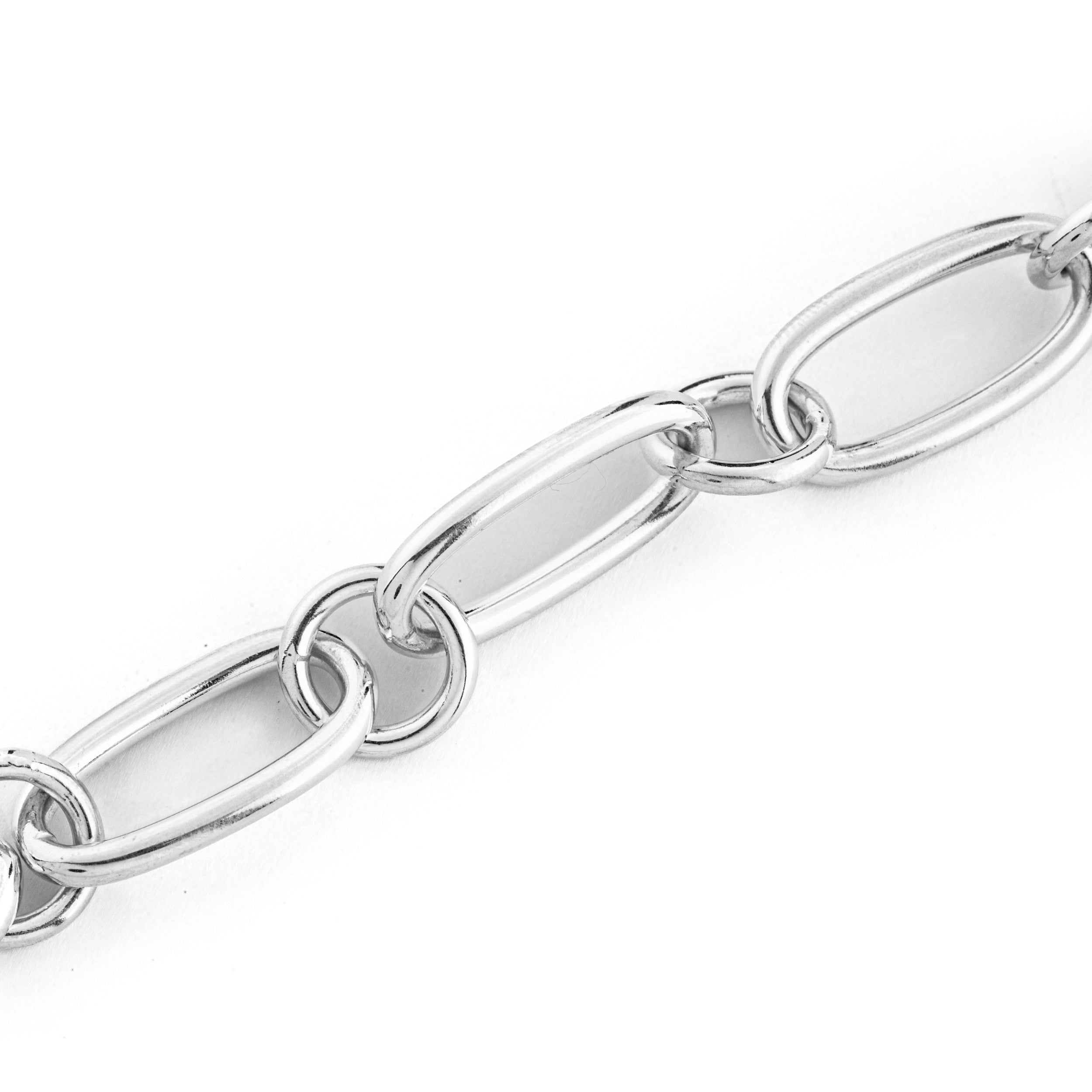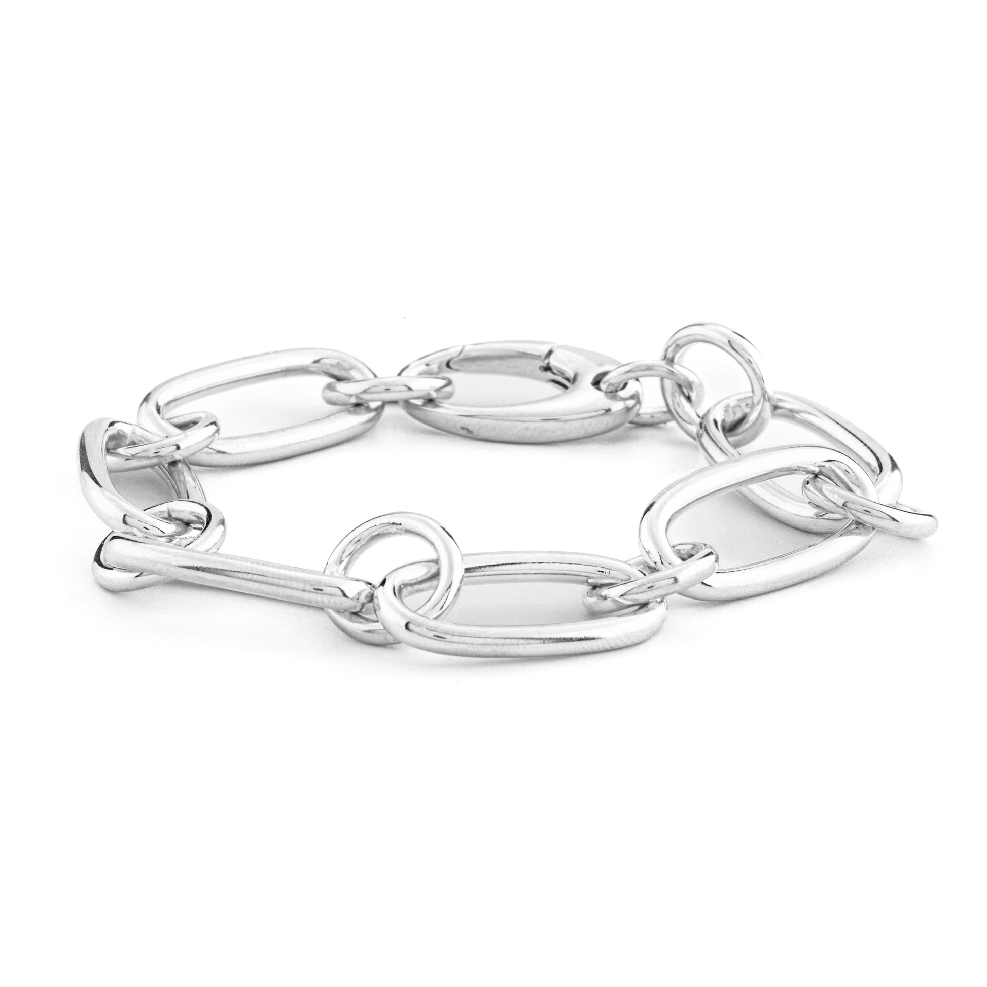 Esclusivo bracciale in argento 925 con maglia Zala, composto da anelli ovali con sezione rotonda. Realizzato con materiali di alta qualità. Lunghezza di 18 centimetri.
