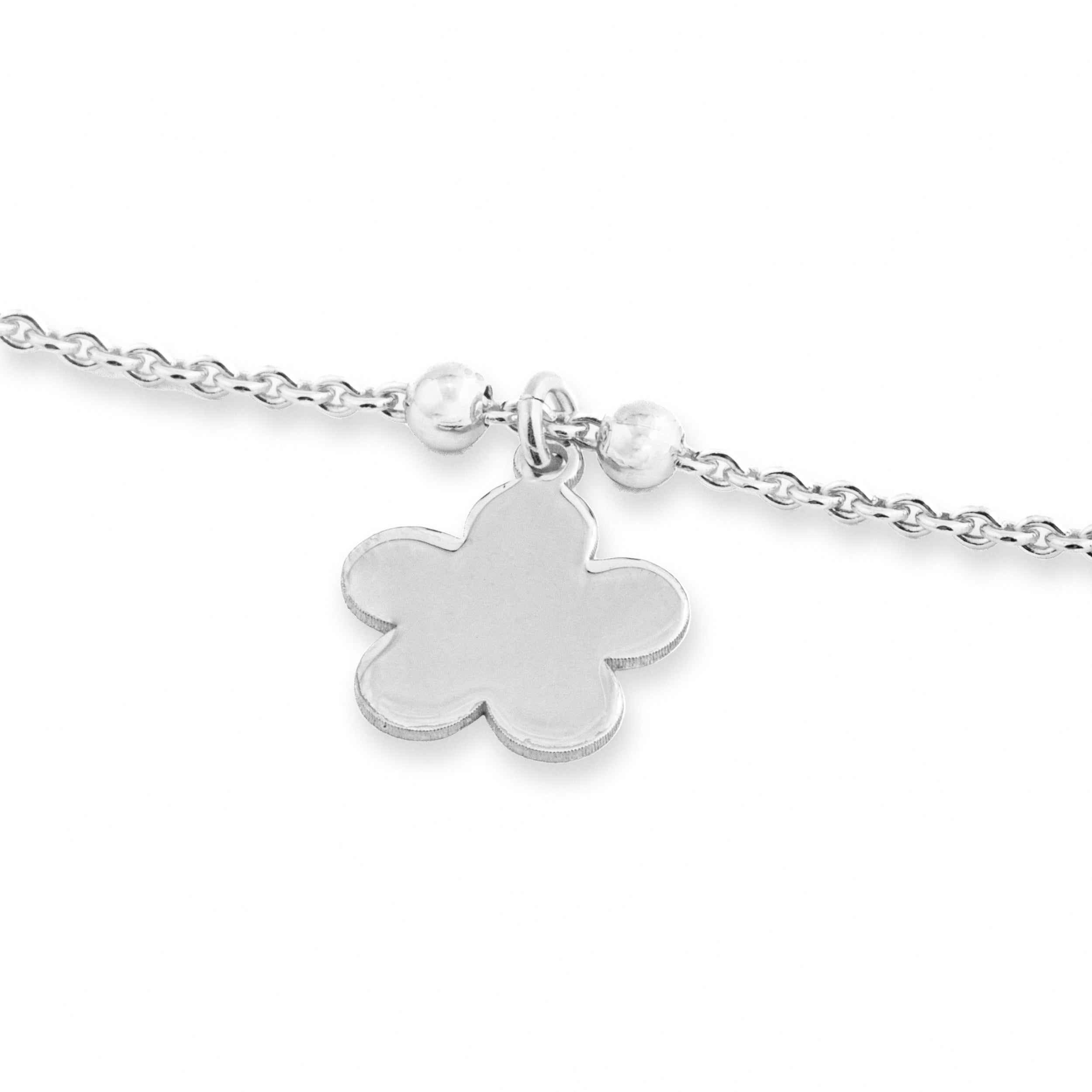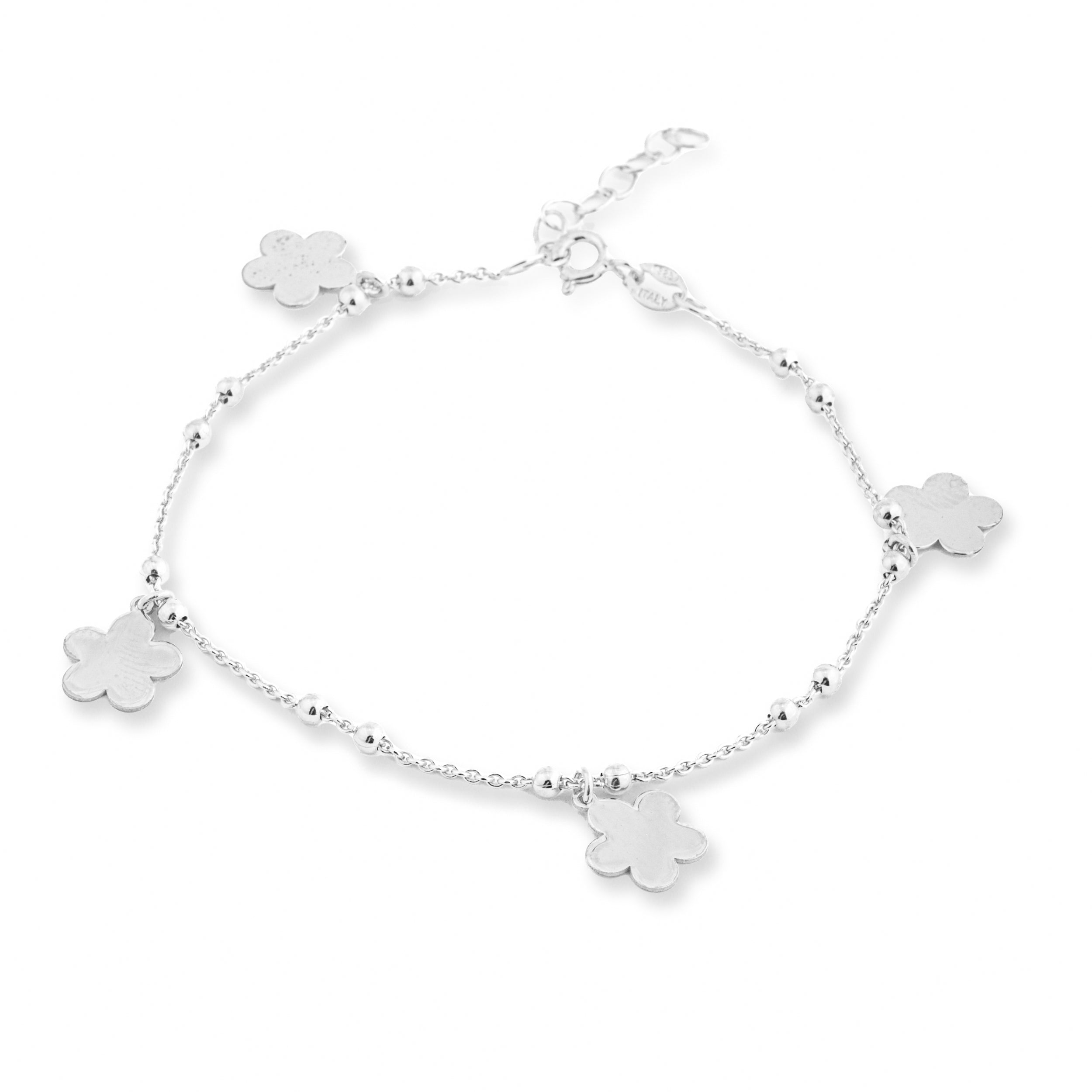 Esclusivo bracciale in argento 925 con cuatro margherite pendenti. Realizzato con materiali di alta qualità. Lunghezza: 17,50cm. Estensione 4cm