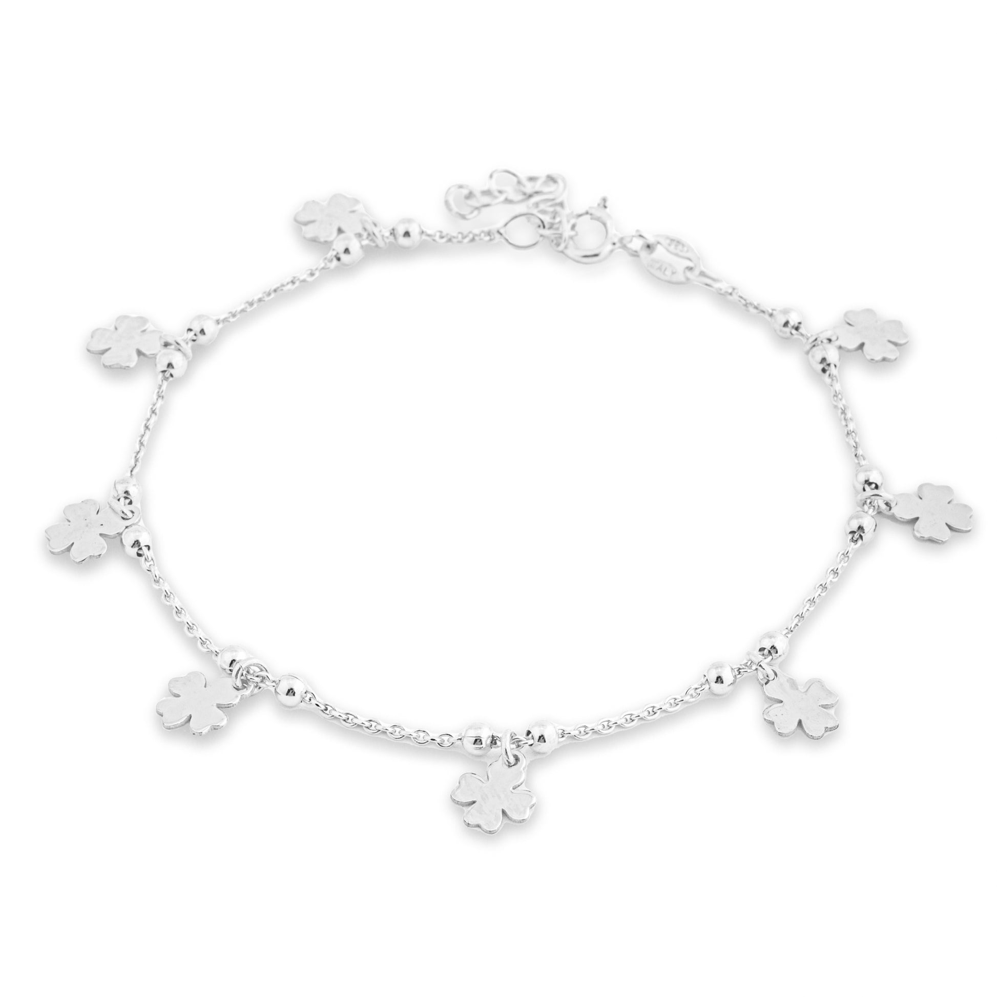 Esclusivo bracciale in argento 925 con 8 margherite pendenti. Realizzato con materiali di alta qualità. Lunghezza: 17,50cm. Estensione 4cm