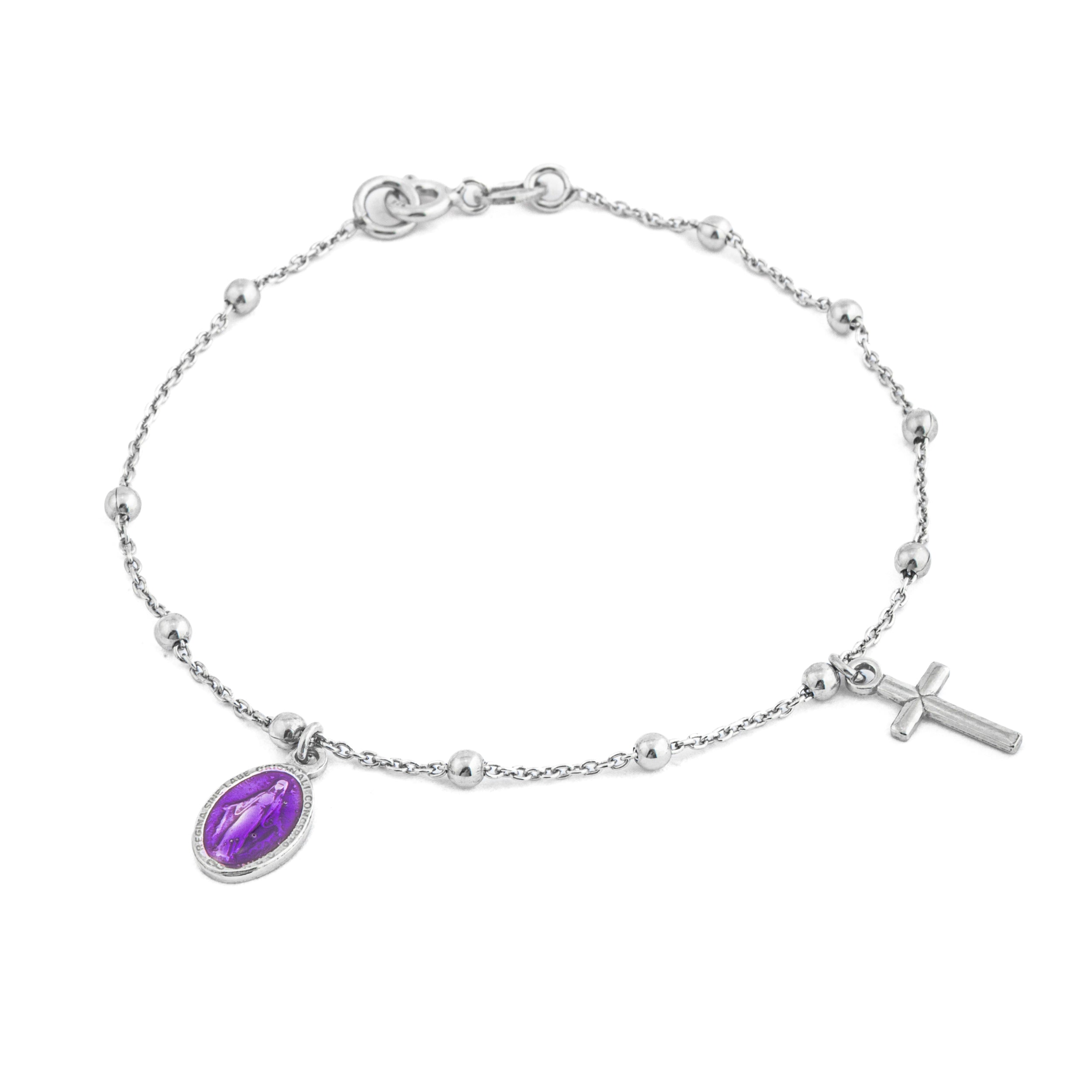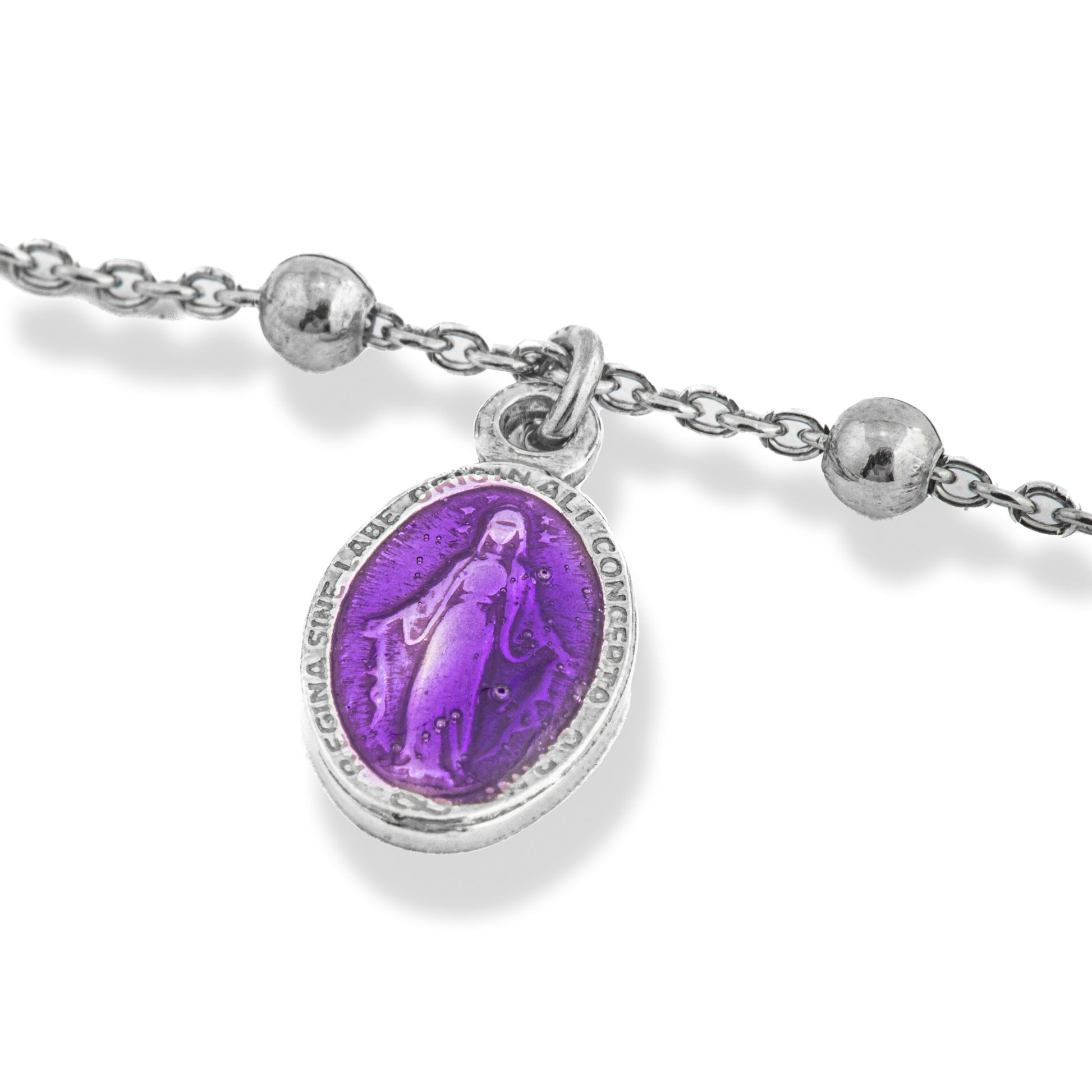 Bracciale argento 925 con Madonna Miracolosa Smaltata e Croce