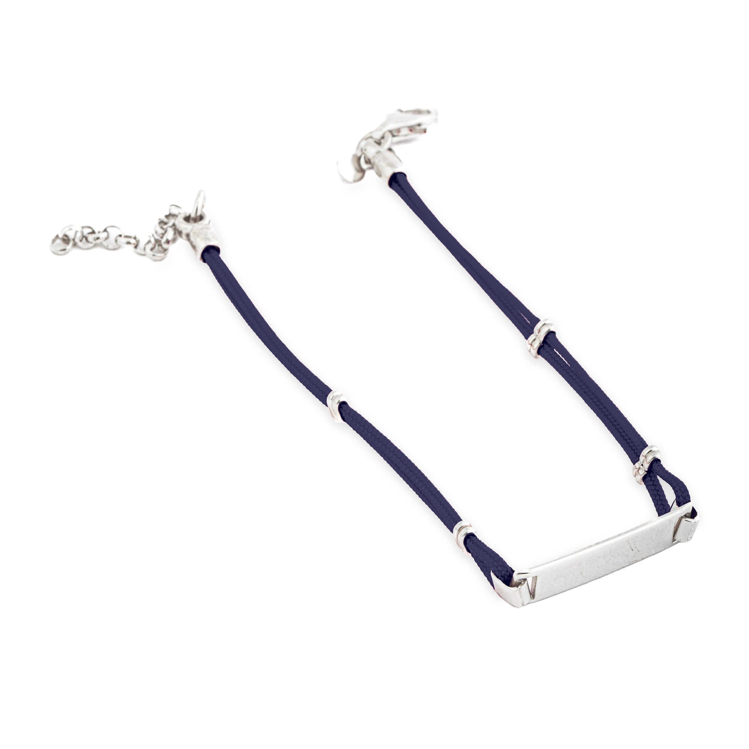Esclusivo bracciale in argento 925 con piastra e cordino Realizzato con materiali di alta qualità. Lunghezza di 17 cm + estensione 3,5cm