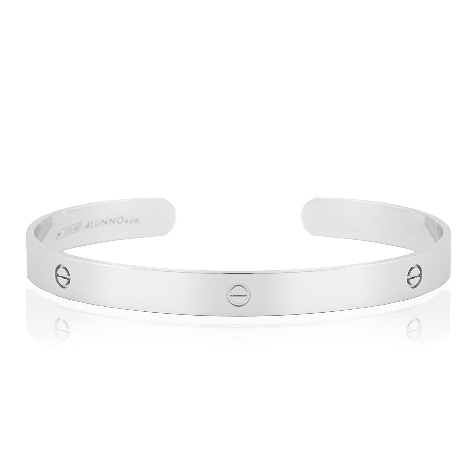 Esclusivo bracciale in argento 925 rigido, aperto stto viti incise, spazzolato lucido. Realizzato con materiali di alta qualità. Larghezza 8mm. Spessore 1,5mm.