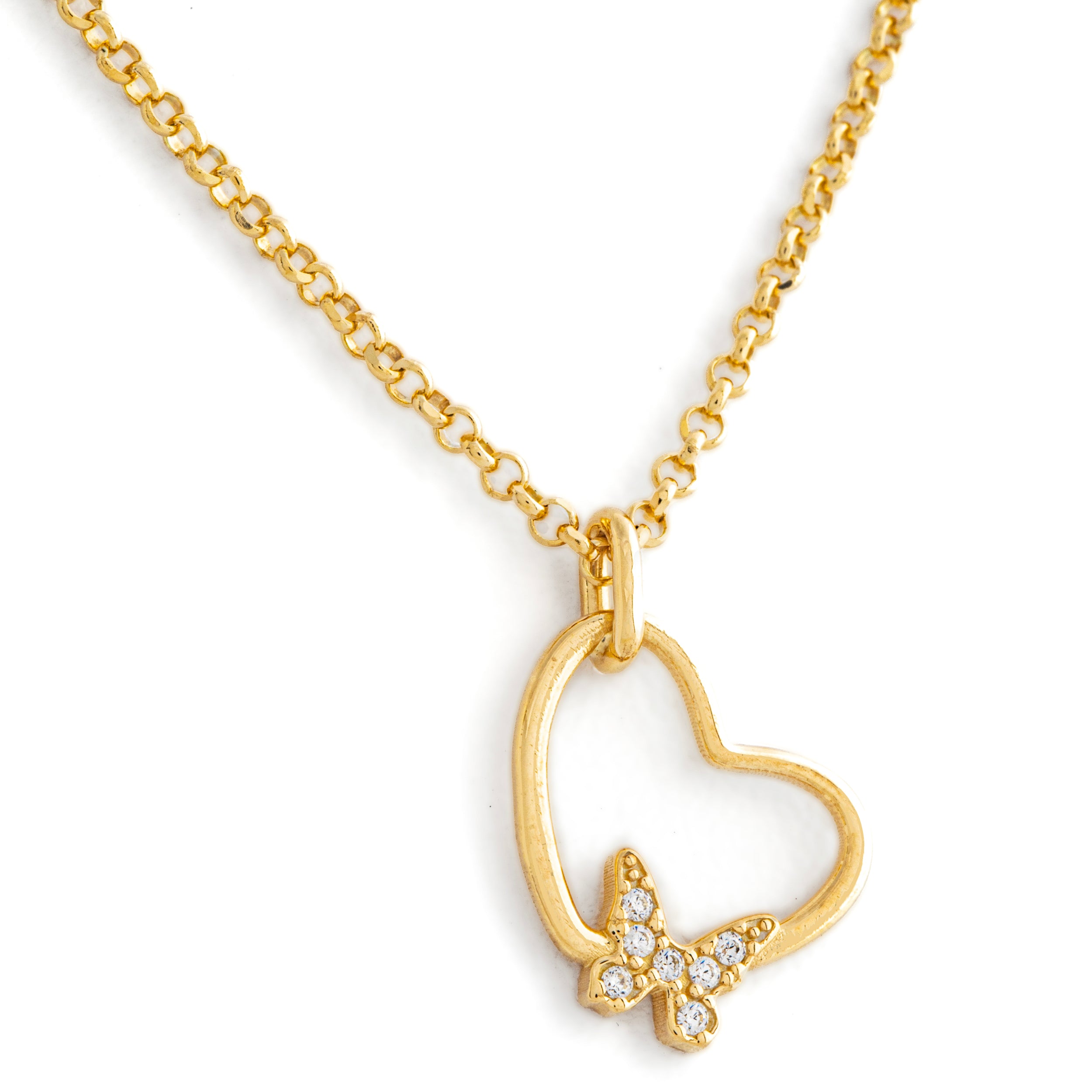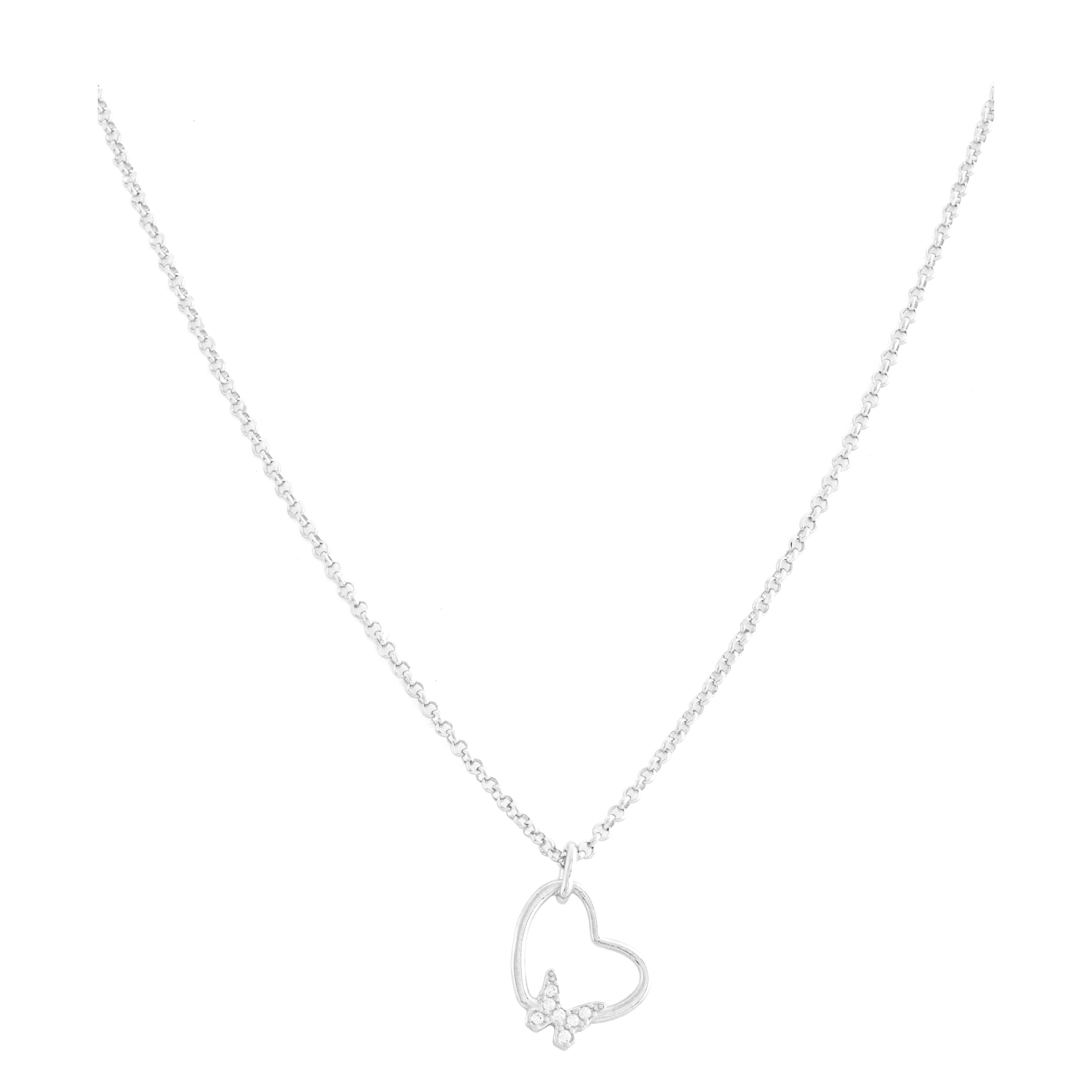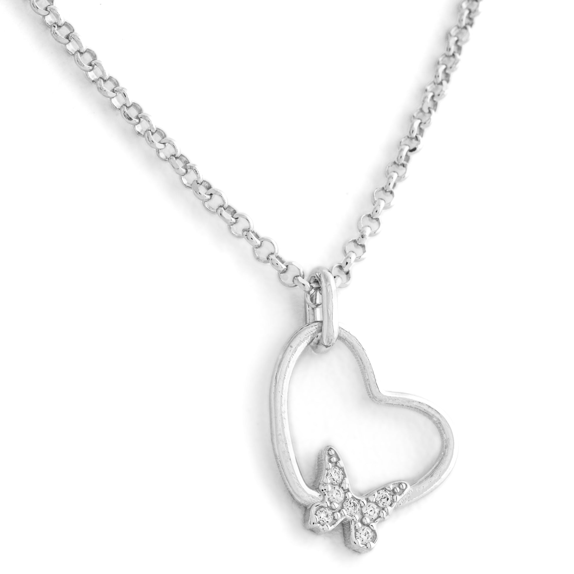 Esclusiva Collana Argento 925 di alta qualità con maglia rolò e cuore pendente e farfalla. Con una lunghezza di 46cm.