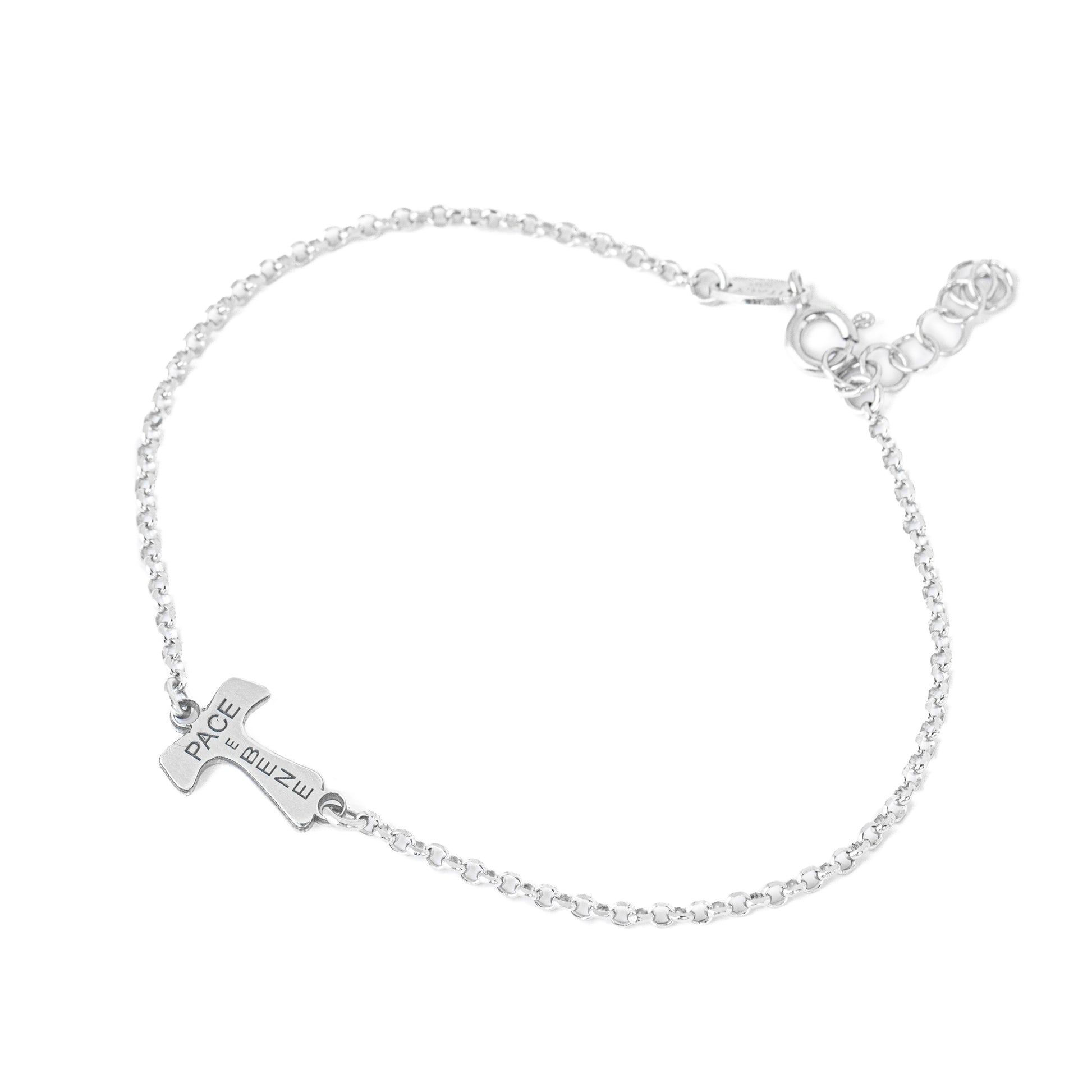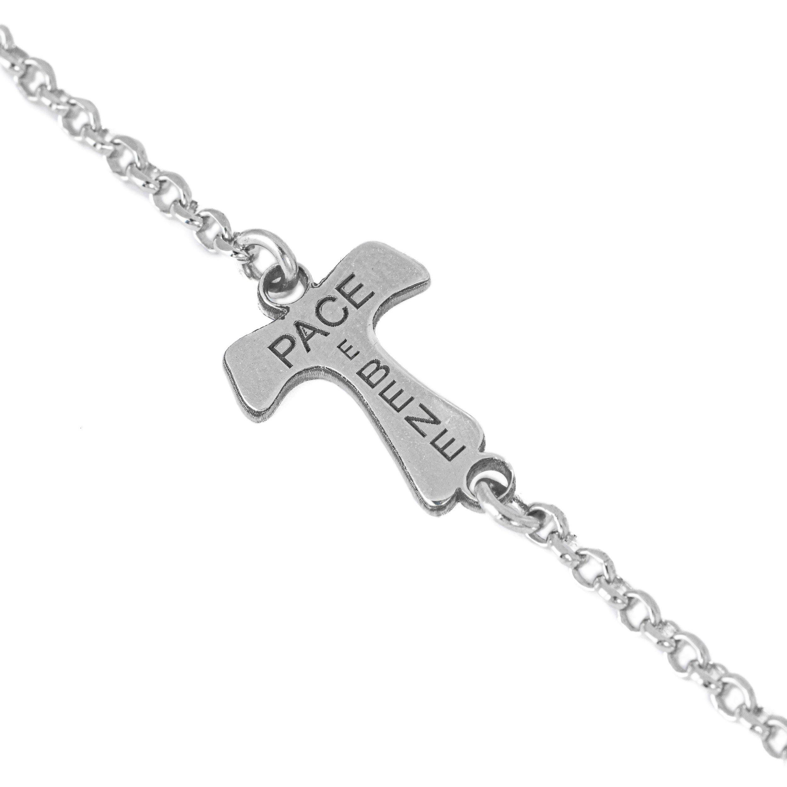 Bracciale in argento 925 con croce Tao fatta a mano e con scritta "Pace e bene"